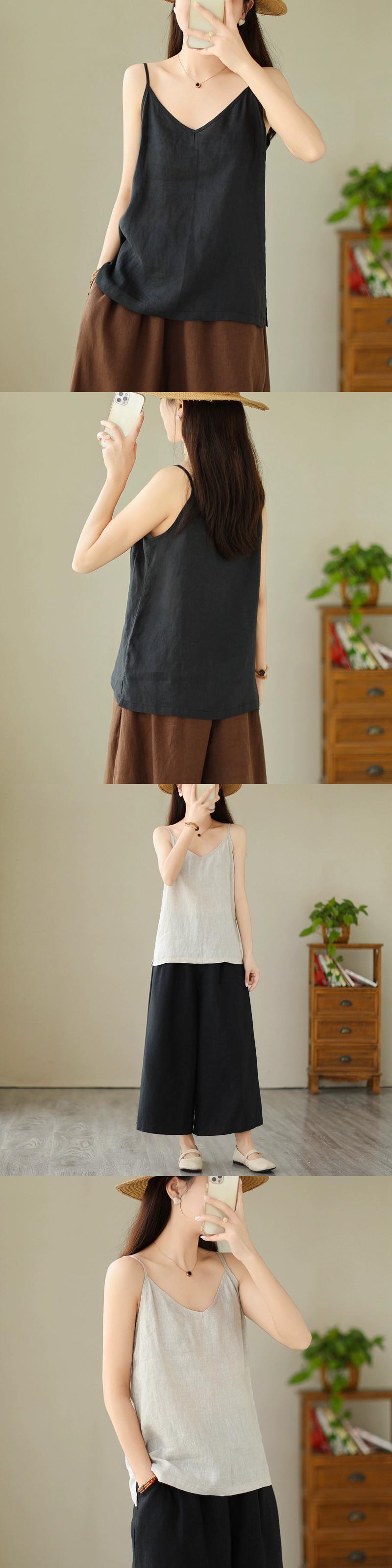 eign trade ese オリジナルシングルビッグネーム綿とリネンの小さなキャミソール女性のゆったりとした軽いリネンインナーノースリーブトップ コットン sine29908056203