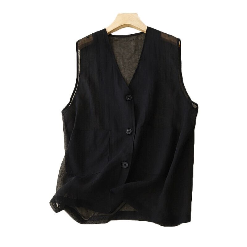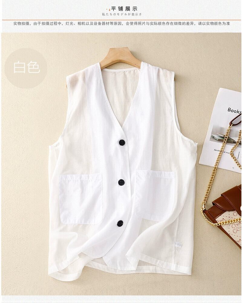 eign trade counter ブランドテールグッズレトロ綿とリネンチョッキベスト女性のルーズ V ネックリネンノースリーブトップ薄い コットン Vネック sine40588801023