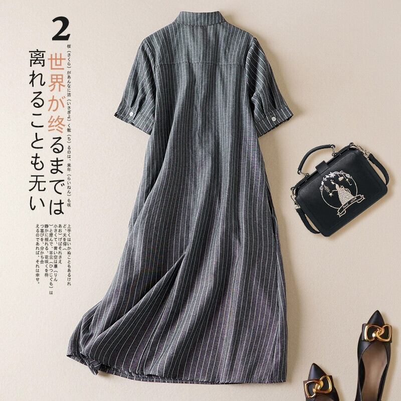 ビッグブランドの在庫切れリネンストライプシャツドレスレディースゆったりスリミングコットンとリネンのAラインロングスカートのクリアランスカウンター削除 sine15898137451