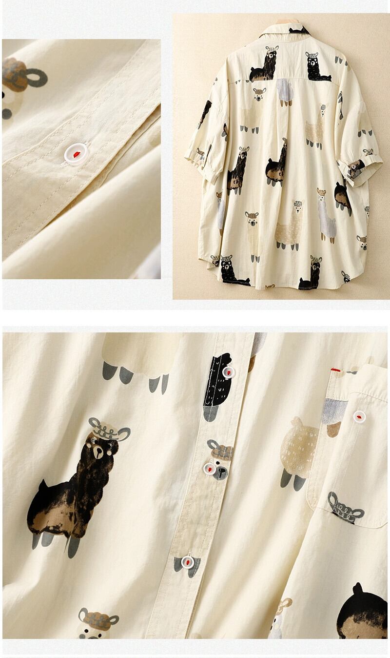 貿易輸出大手ブランドのテール商品が年齢削減のためにキャビネットから撤去され、漫画プリントの半袖シャツの女性、ゆったりとしたカジュアルなシングルブレストのトップス sine60128472058