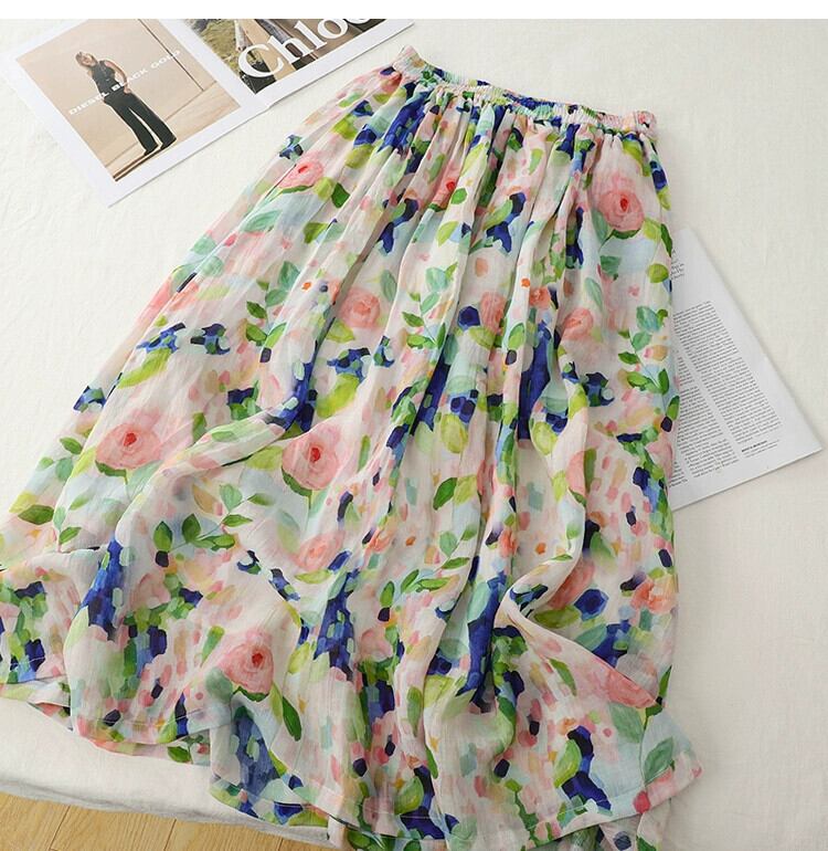 クリアランスブランド 牛グッズ カウンター端在庫 アーティスティック 花柄 ラミースカート レディース ハイウエスト ドレープ リネン Aライン ロングスカート ハイウェスト sine3584380267
