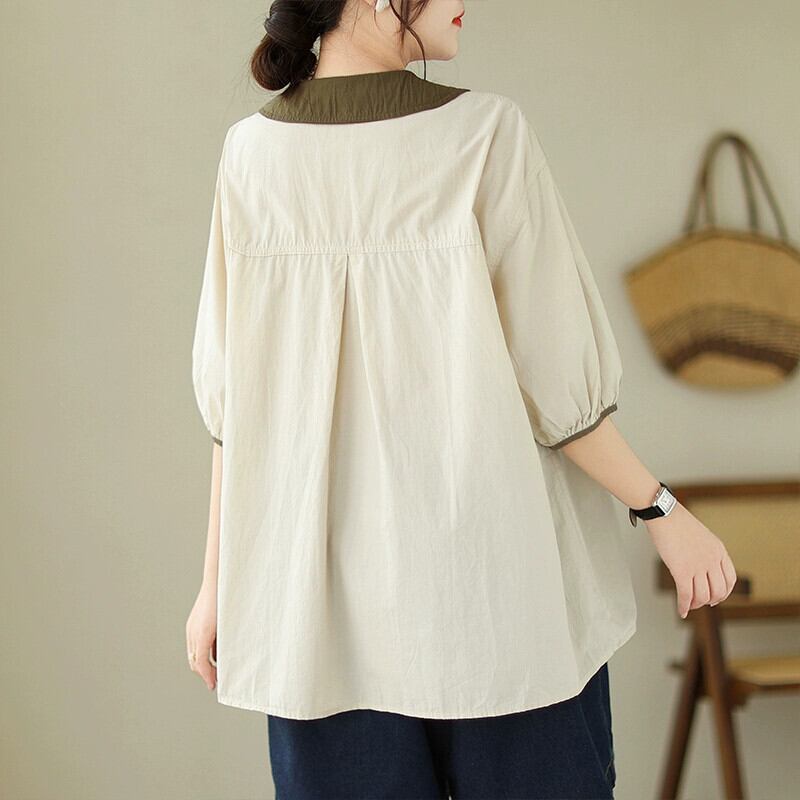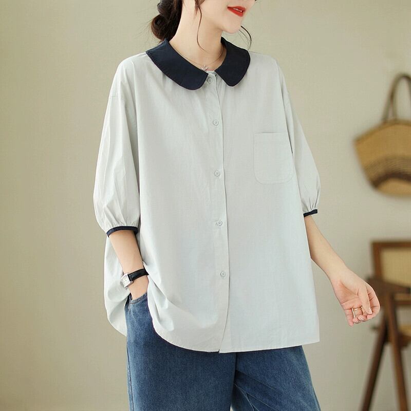 クリアランス クリアランス カウンター 牛グッズ 撤去バージョン コントラストカラー ドールカラー シャツ レディース ゆったり カジュアル 半袖 カーディガン トップス sine23826463829