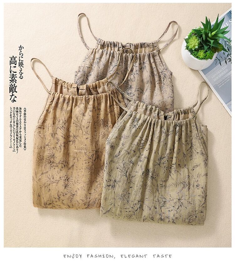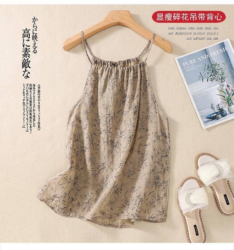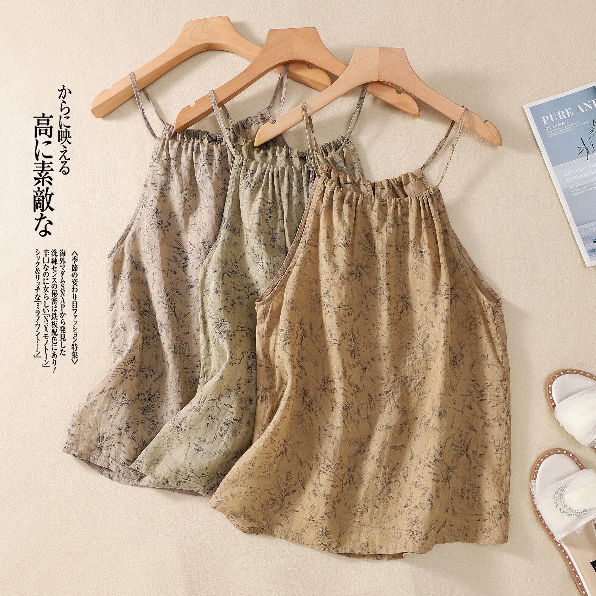 大手ブランドテールグッズのクリアランスカウンター撤去レトロ花柄キャミソールレディースゆったりレースアップ綿麻インナートップス夏 コットン サマー 夏物 sine55149981427
