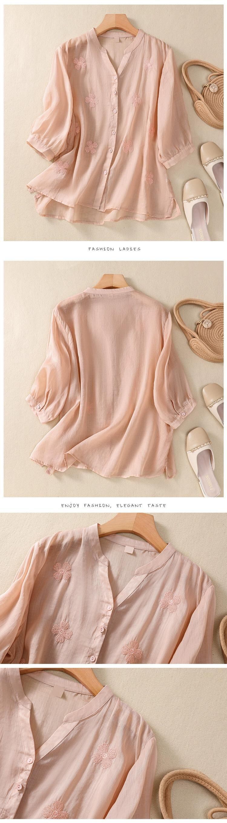 第一線のブランド eign trade 撤退品芸術的な綿とリネンの V ネック シャツ女性のゆったりとした軽いリネン半袖トップ夏 コットン サマー 夏物 Vネック sine73619193471