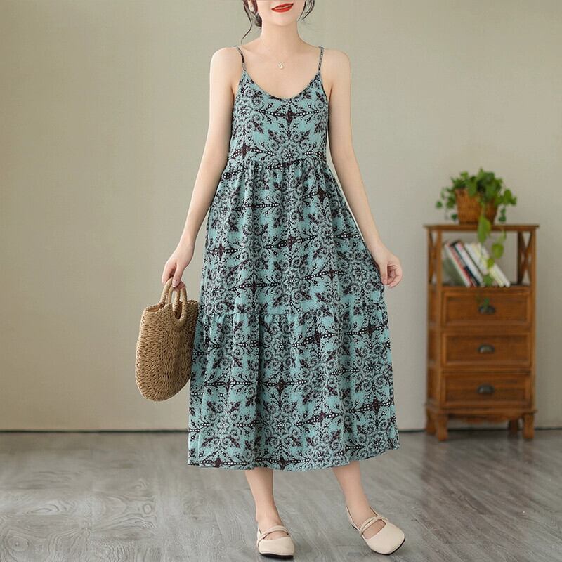 ese オリジナルシングル eign 貿易ブランドレトロスタイル花サスペンダードレスルーズハイウエストノースリーブベストロングスカート女性 ハイウェスト 花柄 sine43863373568