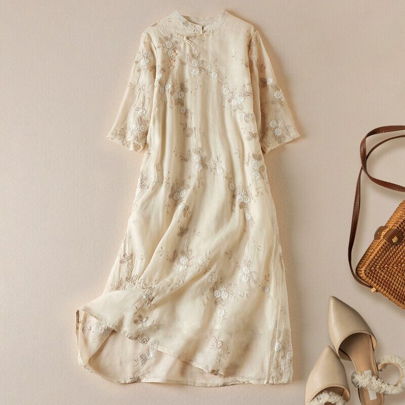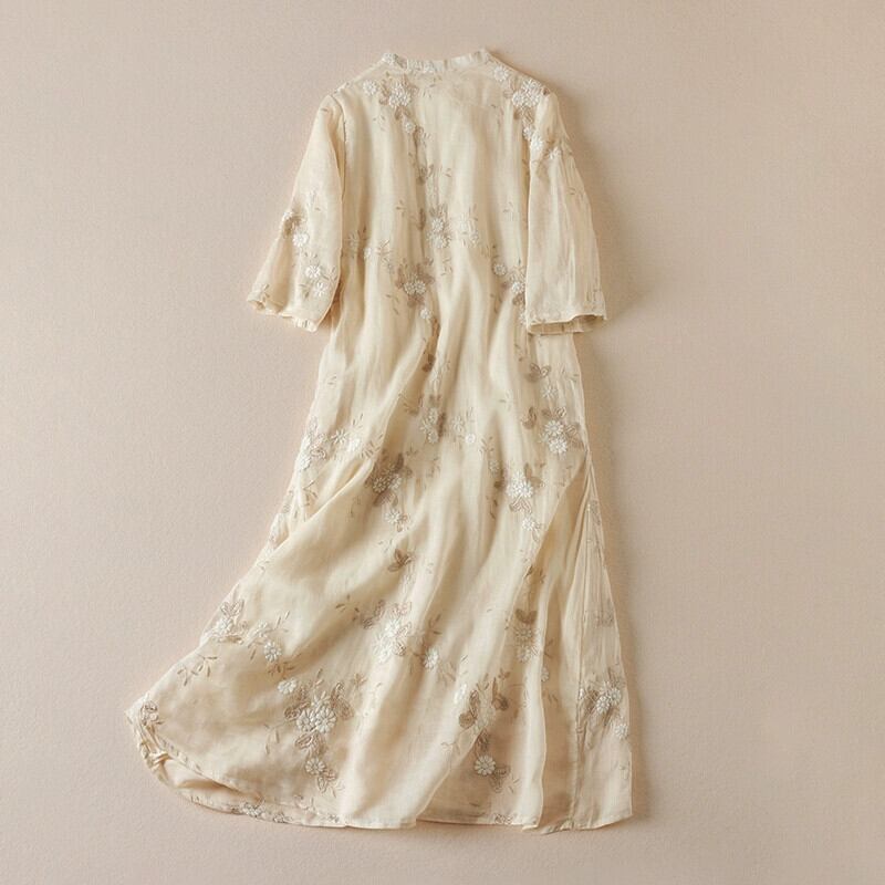 モールビッグネーム撤退最後の在庫中国風改良綿とリネンチャイナロングスカートルーズバックルリネンドレス女性 コットン sine21885457705