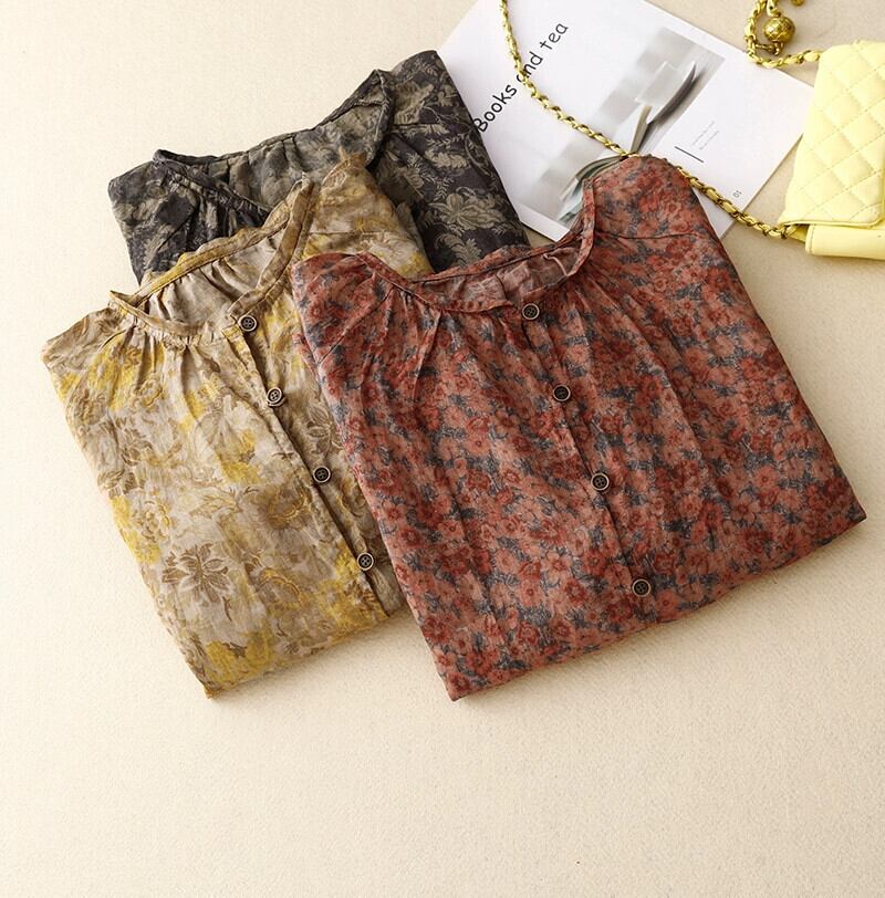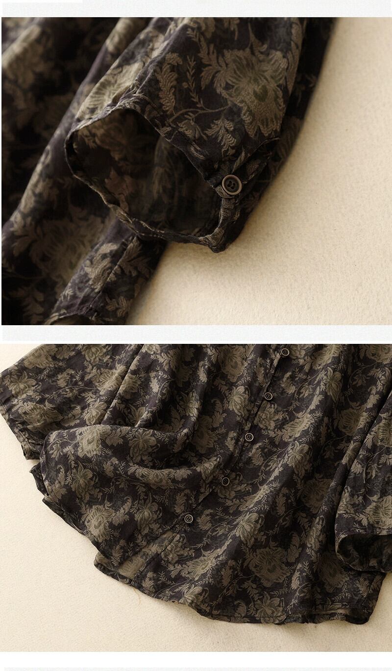 モールビッグネーム撤退最終在庫レトロプリントリネンシャツレディースルーズで軽いコットンとリネンの七分袖トップ sine76509187823