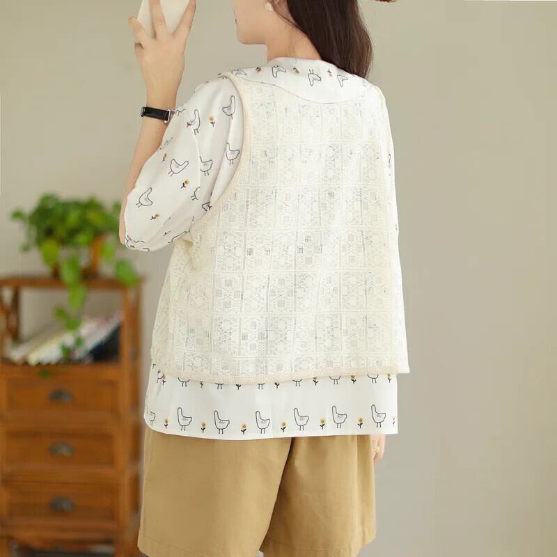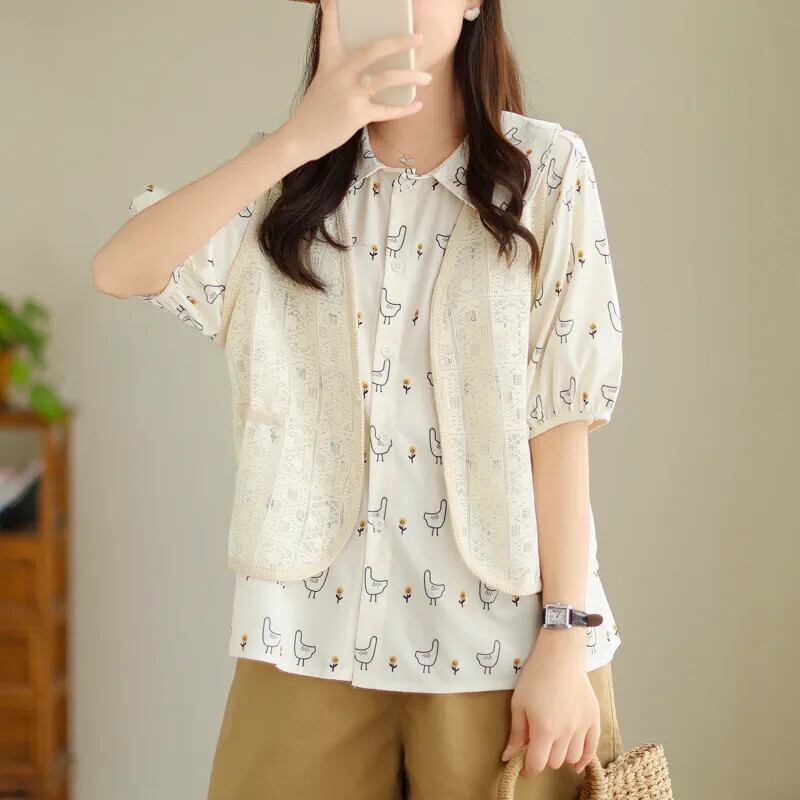 第一線ブランド eign trade 撤退最終在庫年齢削減プリント半袖シャツ女性ニッチシックベストベストトップ sine68272449449