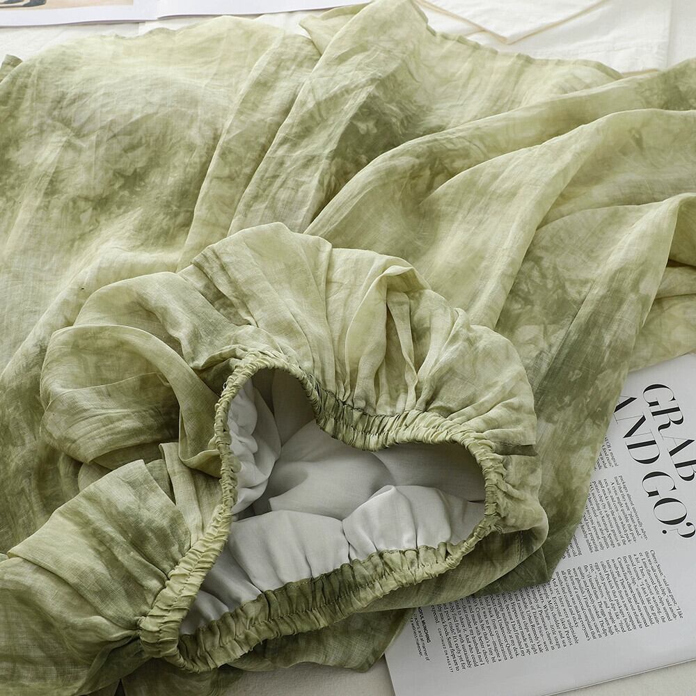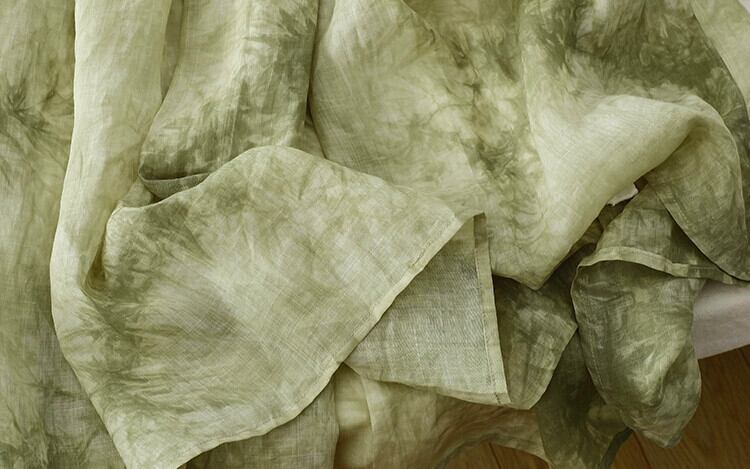 ディスカウントストアショッピングモール絞り染めプリントコットンとリネンスカート女性ハイウエストリネンAラインスカートと大きな裾 sine96151025646