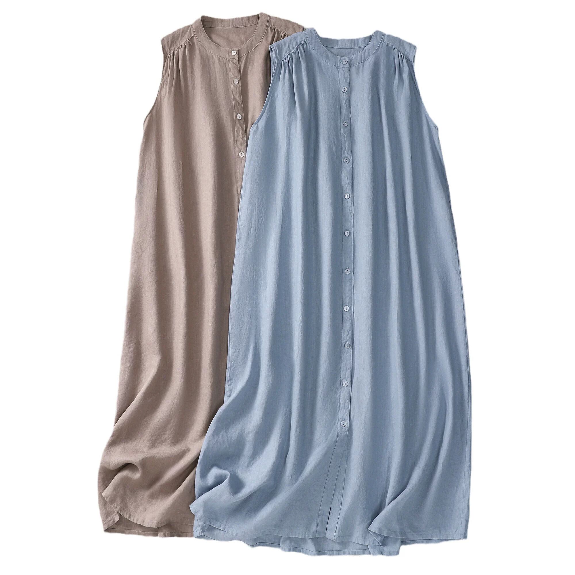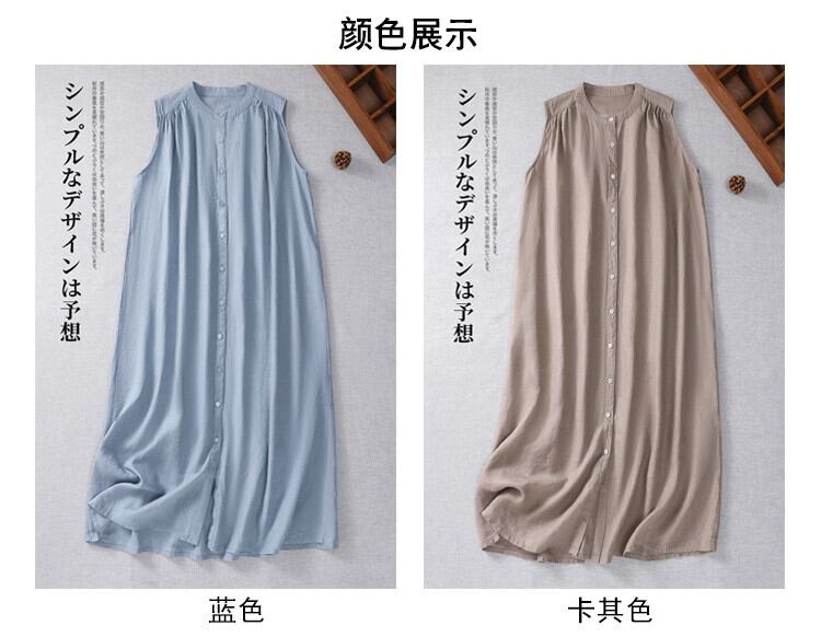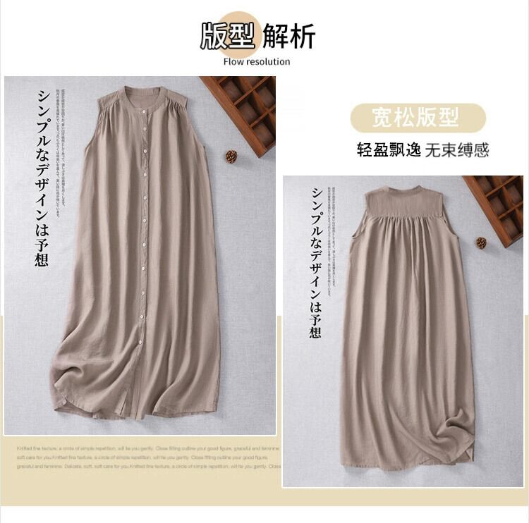 クリアランスブランド牛グッズカウンター最後の在庫 ese 綿とリネンのベストドレスルーズでスリムな綿とリネンのノースリーブシャツドレス コットン sine57564176361