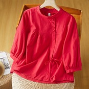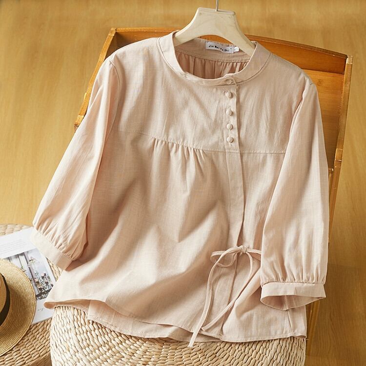 eign trade ese オリジナルビッグネームブランド撤退ニッチデザインレースアップコットンとリネンシャツレディースルーズリネンスタンドアップカラートップ sine43093909734