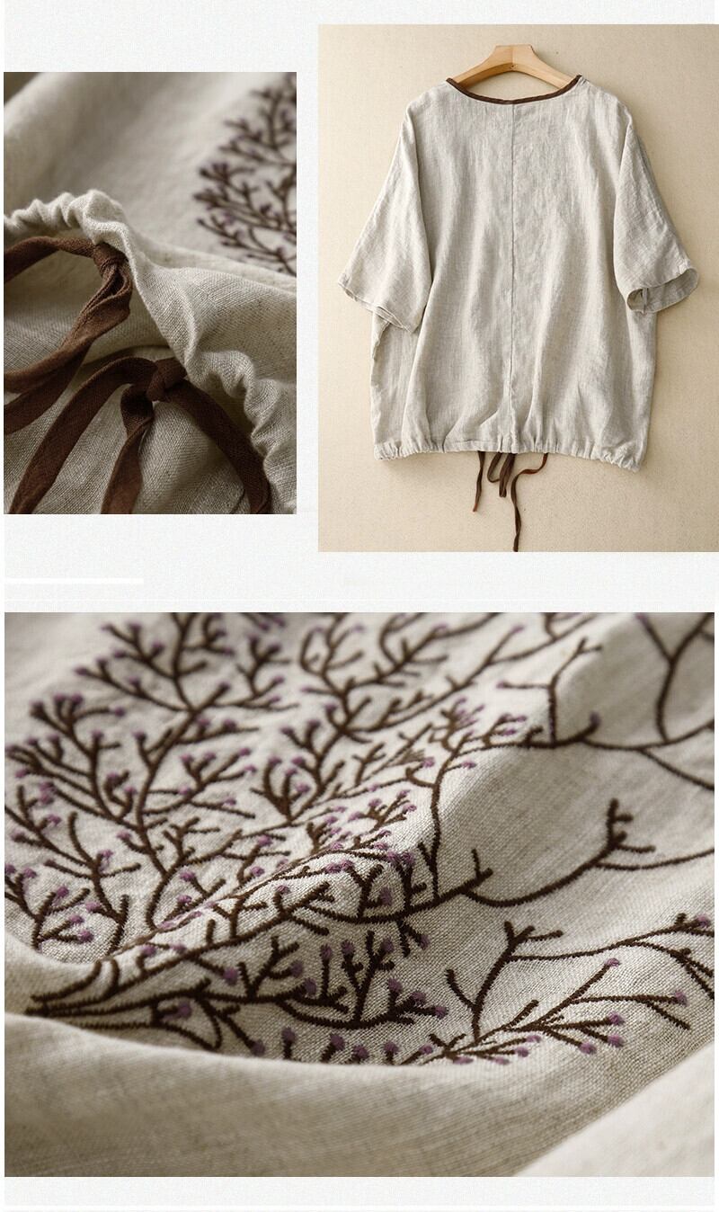 クリアランス漏れ〜カウンターからの最後の商品は、これらの綿とリネンの半袖Tシャツトップス、レディース、ゆったりとした軽いリネンのラウンドネックシャツ、夏です コットン サマー 夏物 Oネック sine62697650526