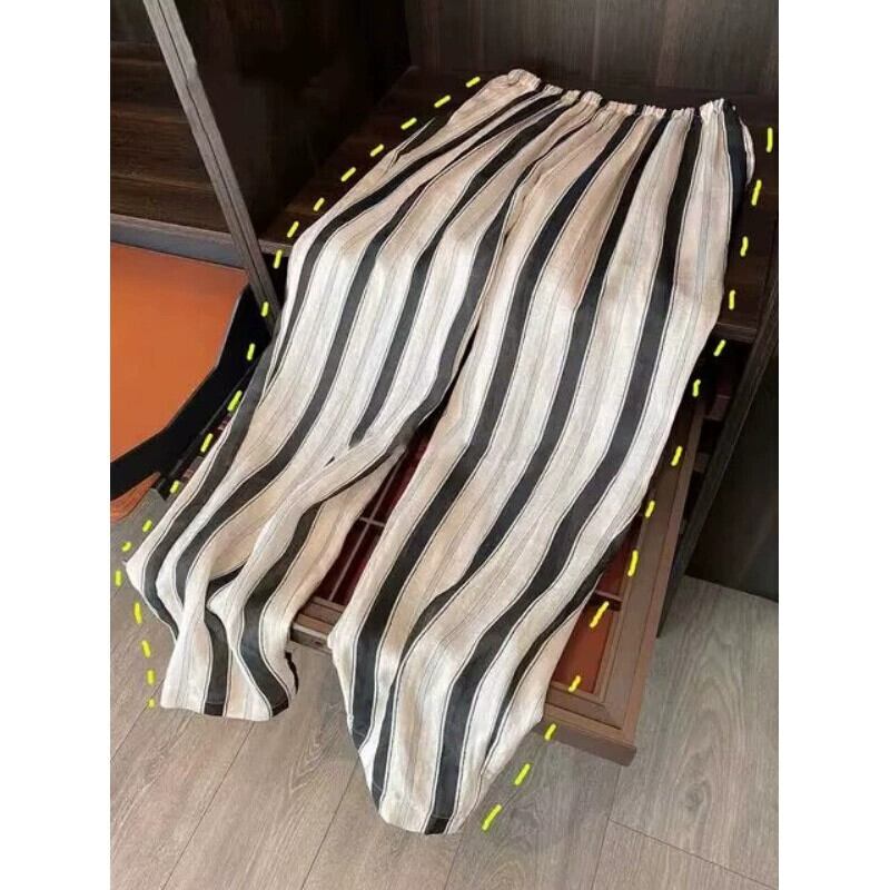 クリアランスカウンター輸出シングルコントラストストライプコットンとリネンワイドレッグパンツ女性ハイウエストストレートラミーカジュアルパンツ sine26667170417