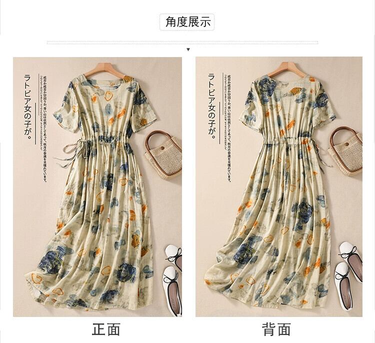 eign trade 割引ブランドテールグッズレディースレトロラミープリントドレスウエストレースアップコットンとリネン大きな裾 A ラインロングスカート Aライン sine2549722477
