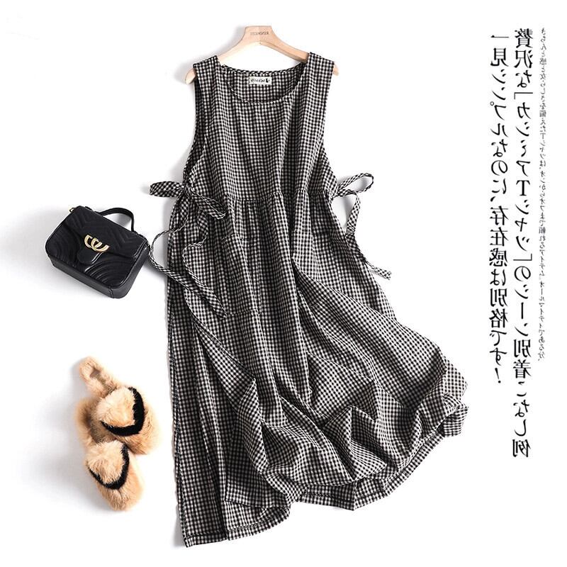 孤児製品、eign trade、イタリアのシングルカットレーベル、ウィメンズクリアランス、エセチェック柄ドレス、コットンリネンベストロングスカート sine70708856349