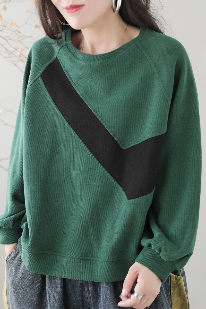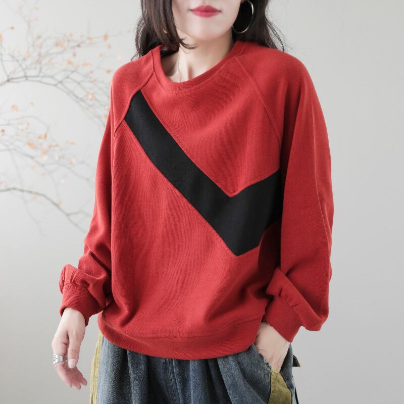 クリアランスクリアランスストアは婦人服の不規則なスプライシングラウンドネックルーズレトロ長袖プルオーバートップジャケットを撤退します ロング Oネック sine36035113139
