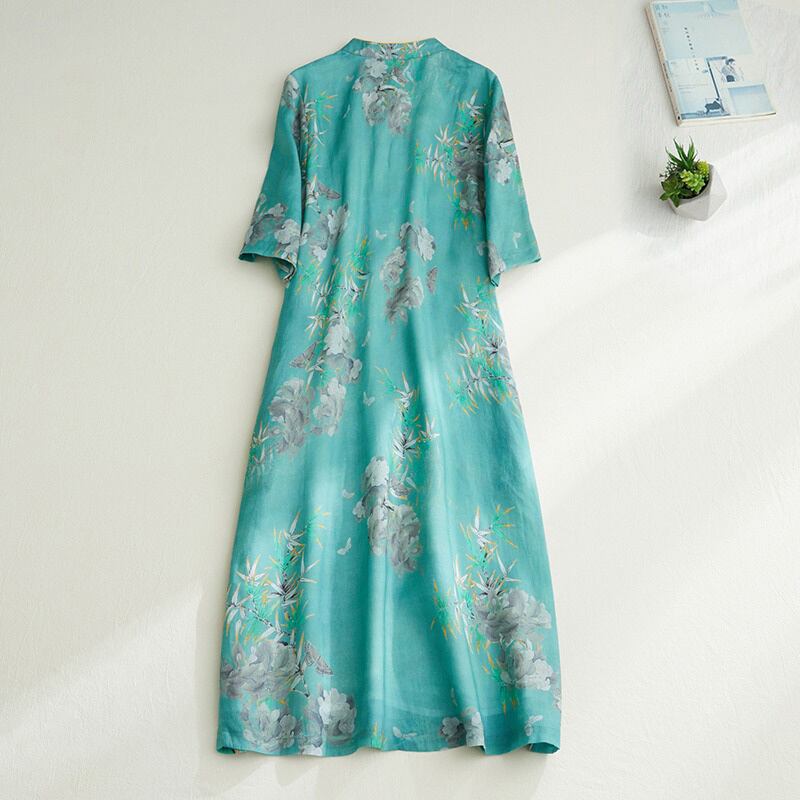 クリアランスリーク〜eseオリジナルシングルコットンリネンドレス痩身中国風斜めラペルバックル改良チャイナドレスラミーロングスカート sine18298387935