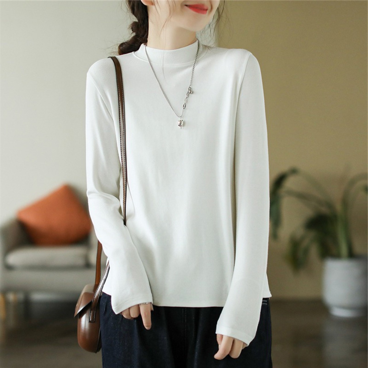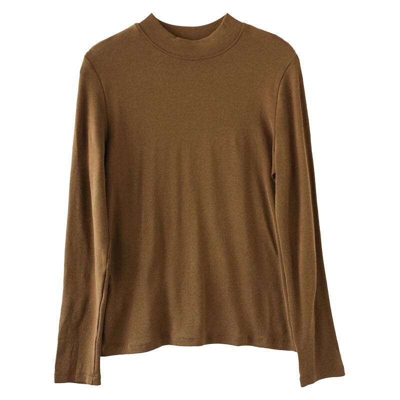 ese オリジナル eign trade 有名な女性の無地多用途ボトムシャツトップ肥厚起毛ハーフタートルネック長袖 T シャツ ロング Tシャツ ソリッドカラー sine21104791528