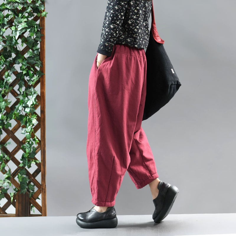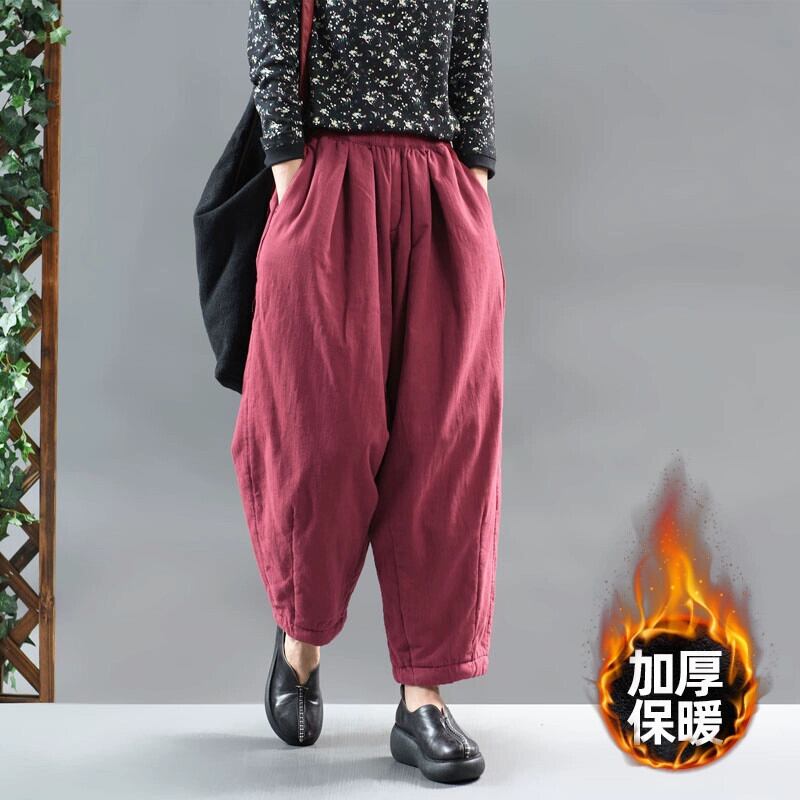 クリアランスカウンター最後の在庫の女性のレトロなルーズキルティングハーレムパンツ厚く暖かい綿とリネンのランタンパンツ コットン sine53557193082