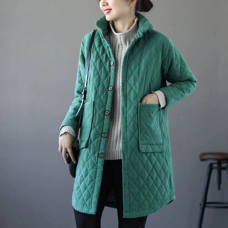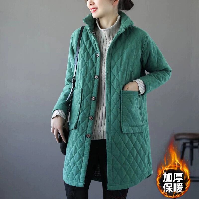 モールの有名人がカウンターから撤退しました、最後の在庫の女性のキルティングの厚い暖かい綿のコート、ルーズなミッドレングスのひし形の綿のコート コットン sine34663964346