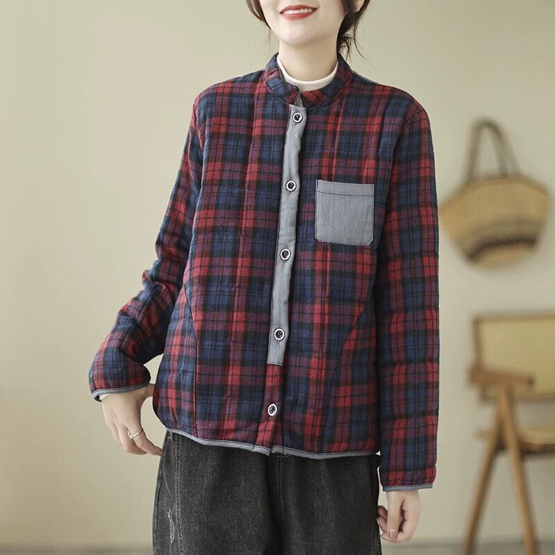 クリアランスブランド牛グッズカウンターテールグッズ女性のチェック柄キルティング肥厚綿コート冬のレトロな緩い暖かい綿コート コットン ウィンター 冬物 sine55541533090