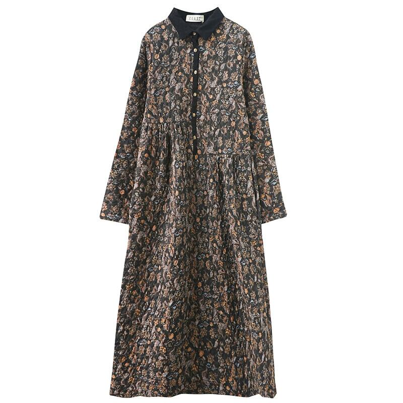 厚手のキルティングドレス、秋と冬のエスニックスタイルの花柄コットンとリネンの太mmニーハイプラス暖かいカジュアルコットンミッドレングススカート オータム 秋物 ウィンター 冬物 sine59865280871