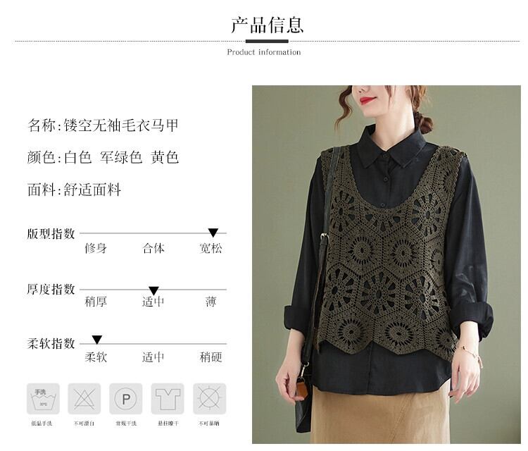 ニットサスペンダーベスト女性 2022 春と夏ルーズでスリムな中空かぎ針編みノースリーブ大きいサイズアウターベストトップ 大きめサイズ スプリング 春物 サマー 夏物 sine93742633682