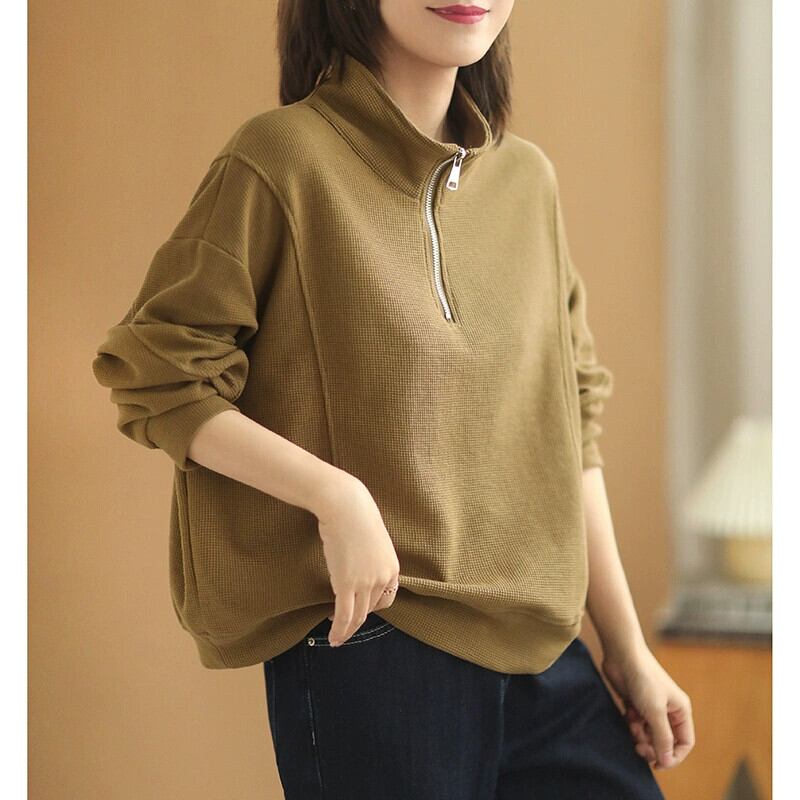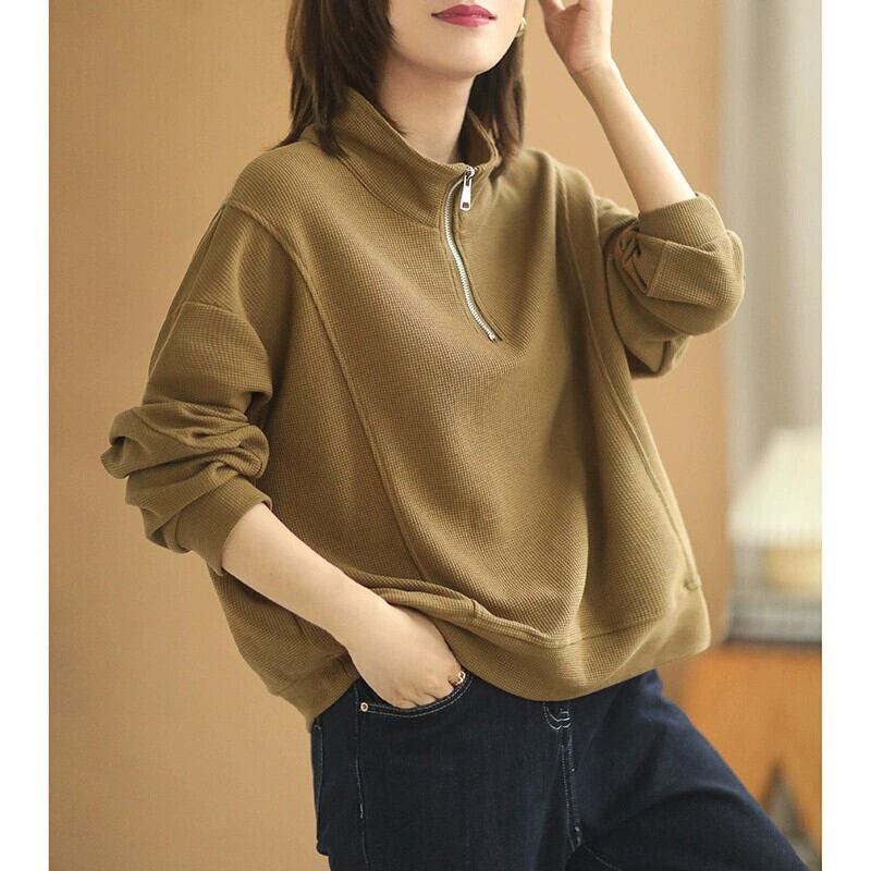 第一線のハイエンドの有名なクリアランスグッズカットラベルプラスサイズの女性のスタンドアップカラージッパープルオーバートップカジュアル長袖スウェットシャツ ロング 大きめサイズ sine91327084740