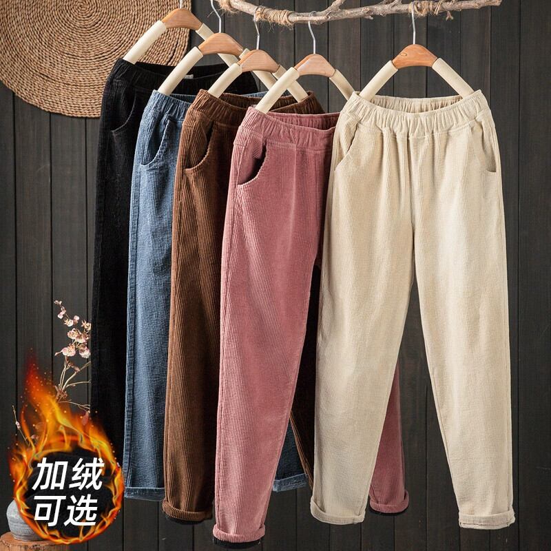 コーデュロイパンツレディース秋冬新作ゆったり大きいサイズプラスベルベット厚みキャロットママパンツコーデュロイカジュアルハーレムパンツ 大きめサイズ オータム 秋物 ウィンター 冬物 sine33729280923