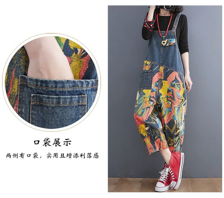 脂肪 mm デニムサスペンダー女性夏ルーズ大きいサイズ痩身レトロプリントスプライシング肉カバーワンピースカジュアルハーレムパンツ 大きめサイズ サマー 夏物 sine91028368872