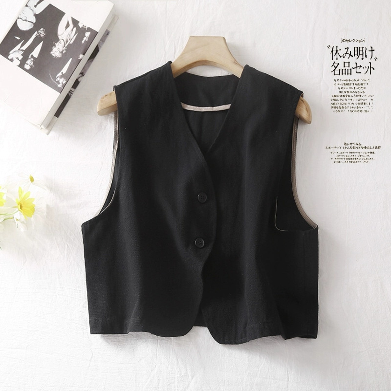 クリアランスカウンター、最終在庫、婦人服、コットンレトロVネックベスト、大きいサイズ重ね着カジュアルベストジャケット 大きめサイズ sine4686228128
