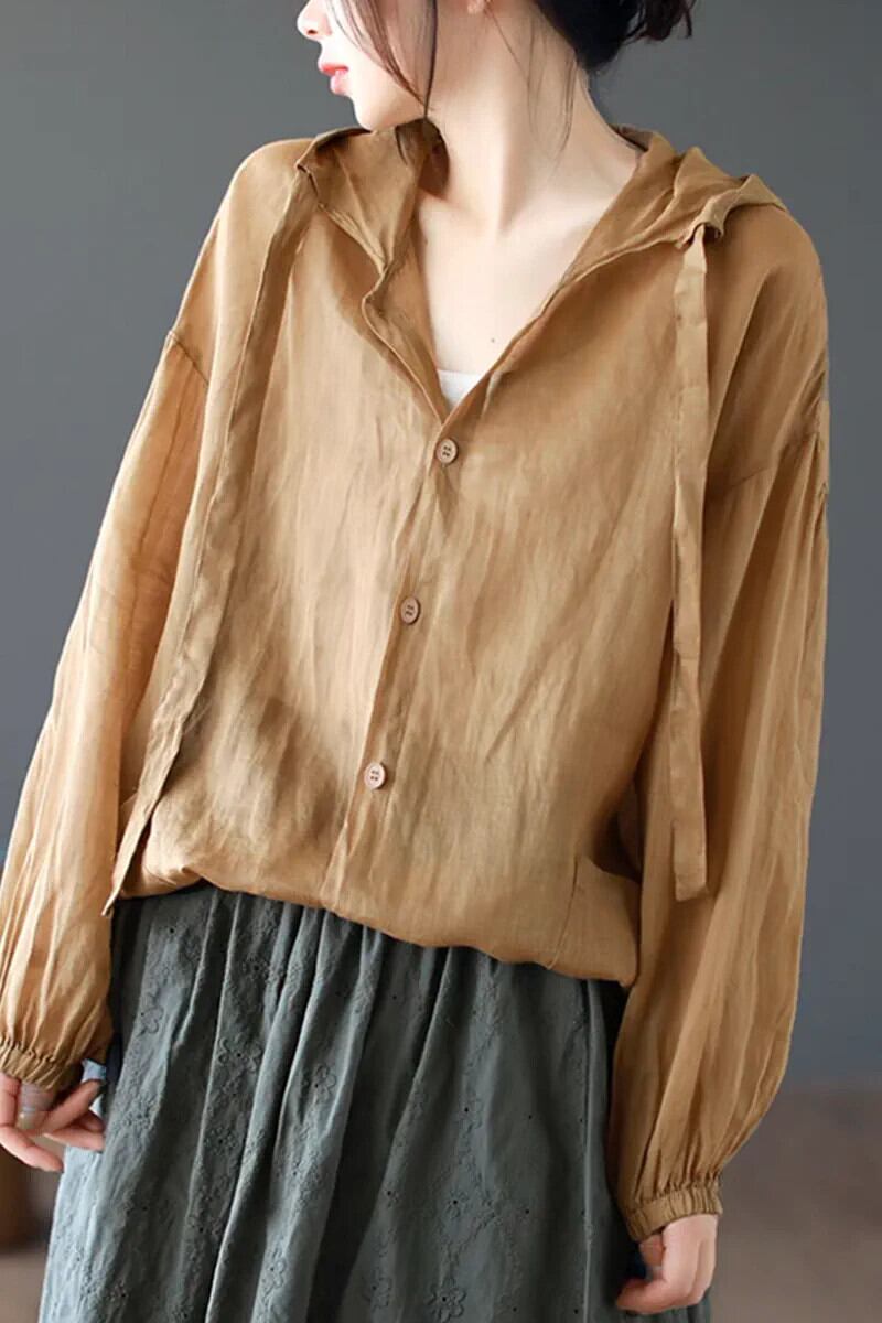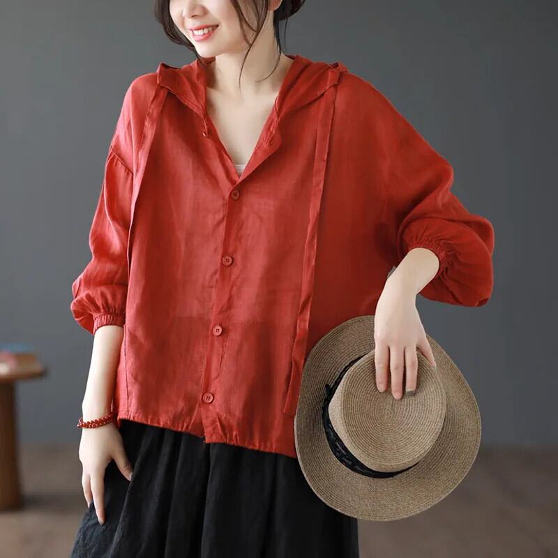 ディスカウントストアショッピングモール削除リネン日焼け止めフード付きシャツ女性のゆったりとした軽い綿とリネンの空調シャツトップ夏 コットン サマー 夏物 sine34983373424