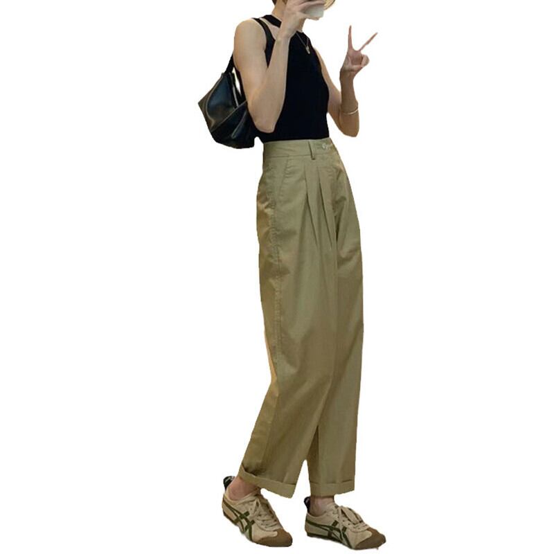 ese and eign trade ビッグブランドテールグッズクリアランスカーキワークウェアハーレムパンツレディースハイウエストカジュアルストレートワイドレッグパンツ小柄な人 sine59604824937