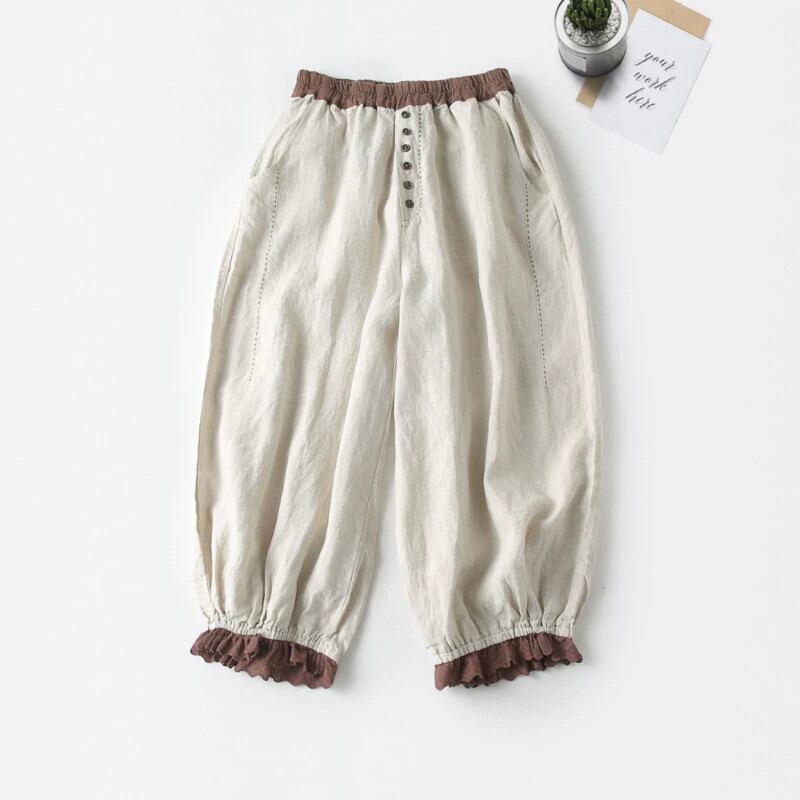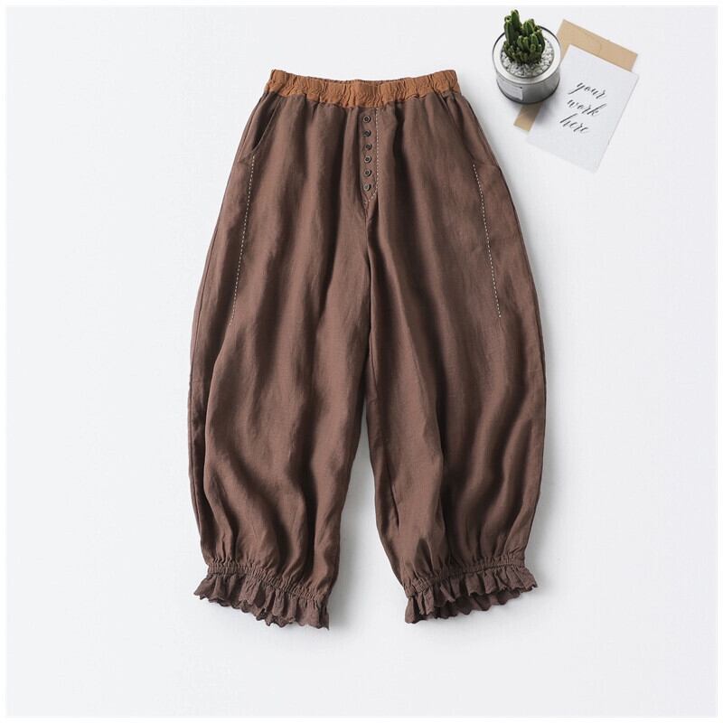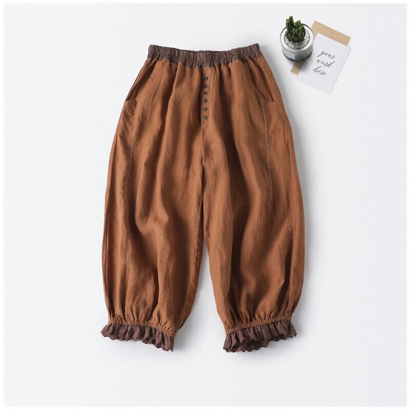 eign trade 割引ブランドテールグッズレトロレースエッジリネンブルマ女性のルーズカジュアルハイウエスト綿とリネンのハーレムパンツ ハイウェスト コットン ショーツ ブルマー sine4842988784