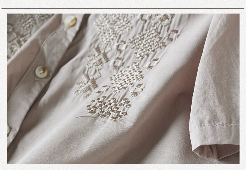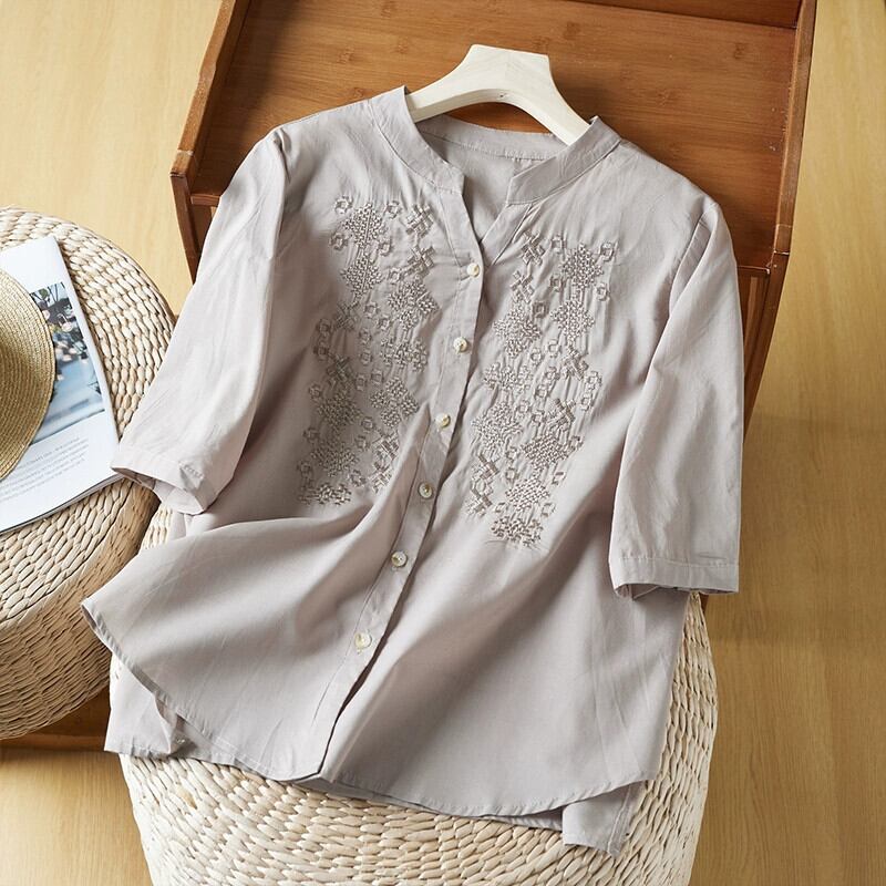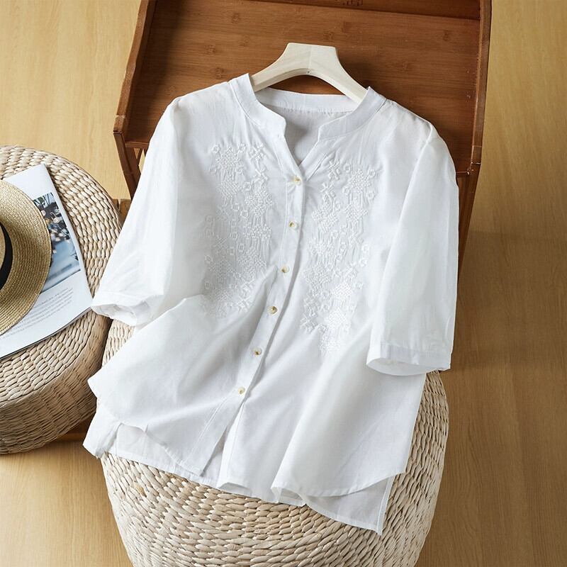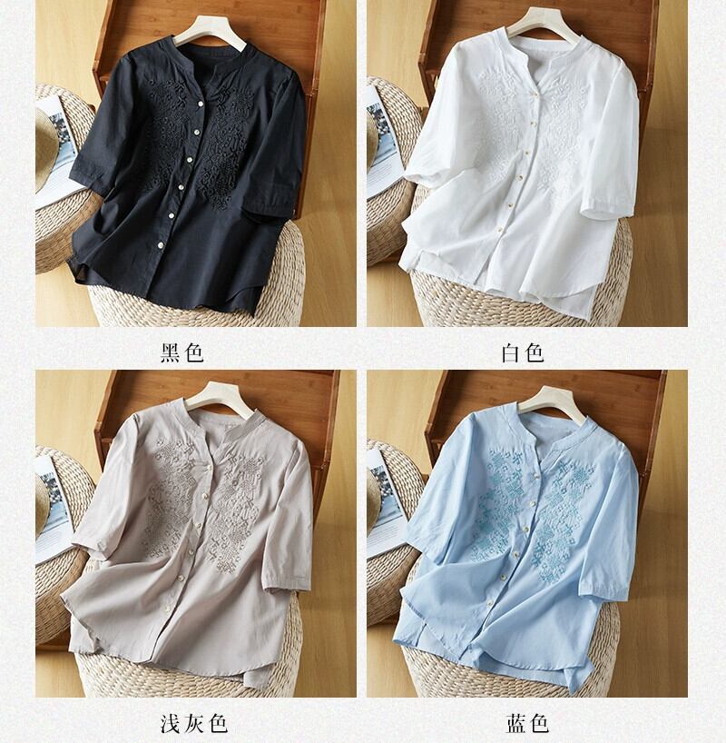 第一線のブランド eign trade 撤退刺繍綿とリネン半袖シャツ女性のルーズカジュアルリネンベビードールトップ レッド コットン sine13847819030