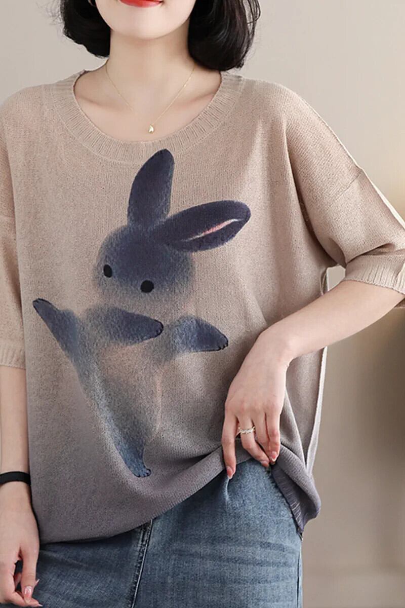 第一線のブランド eign trade 撤退ウサギプリントプルオーバーセーター女性ルーズラウンドネック半袖 Tシャツトップ Oネック sine45640848706