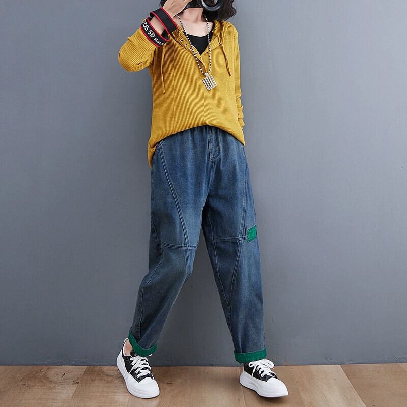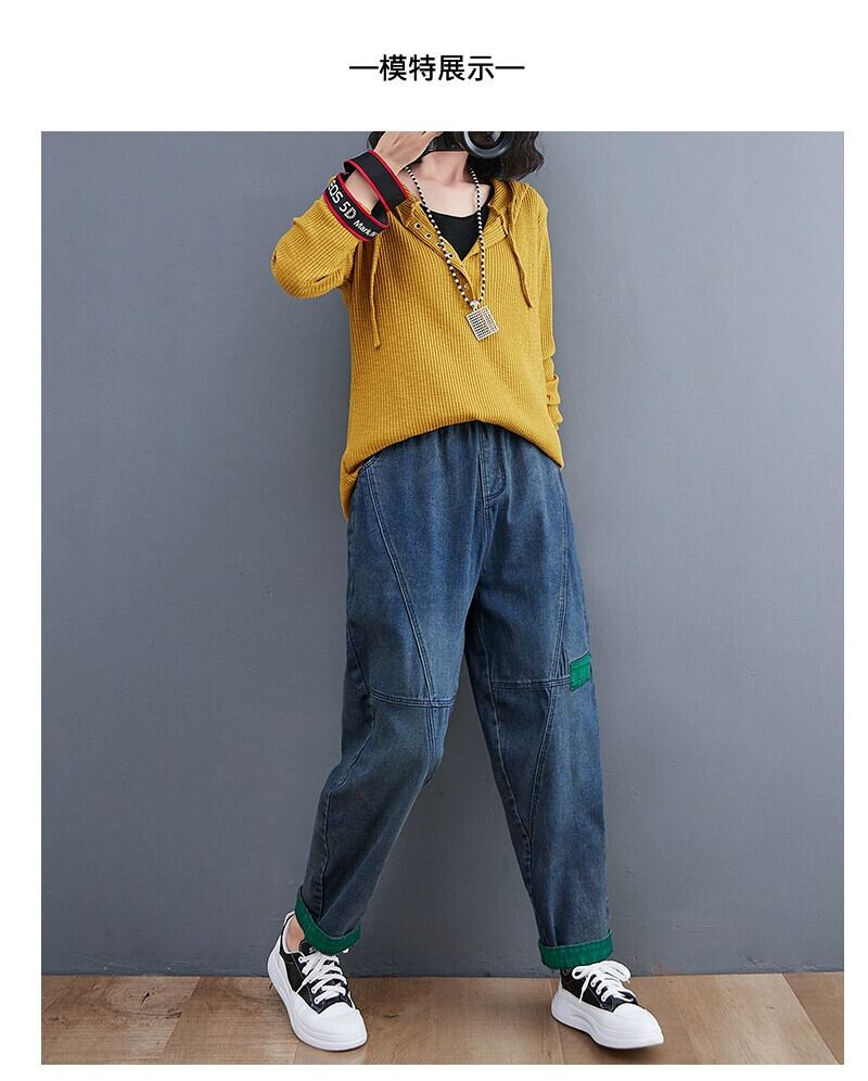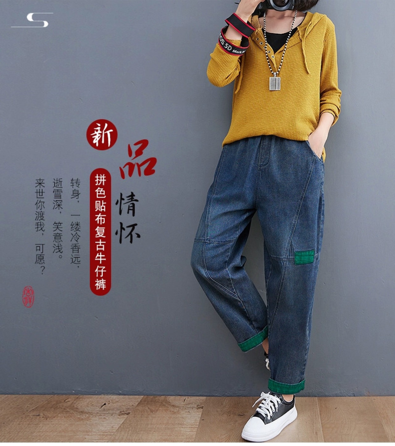 クリアランスピックアップカウンター除去婦人服レトロパッチウォッシュカジュアルジーンズハイウエストダメージ加工9点ハーレムパンツ sine42401468953
