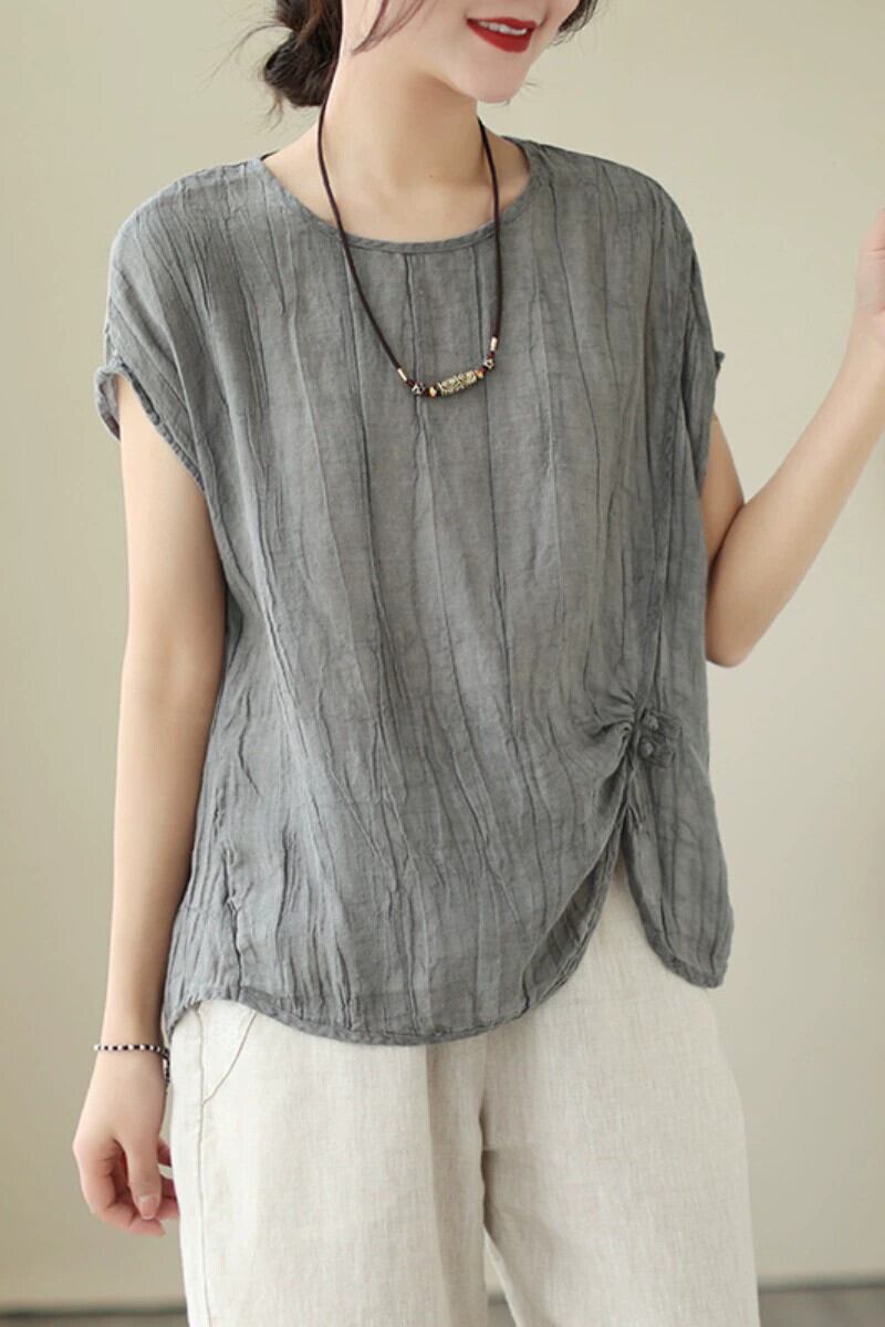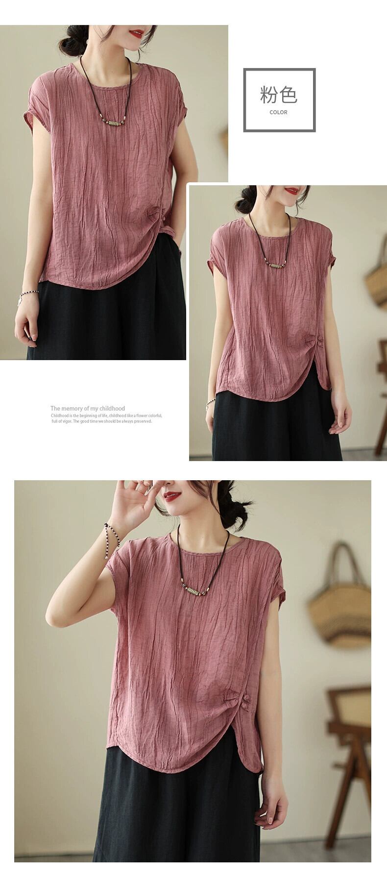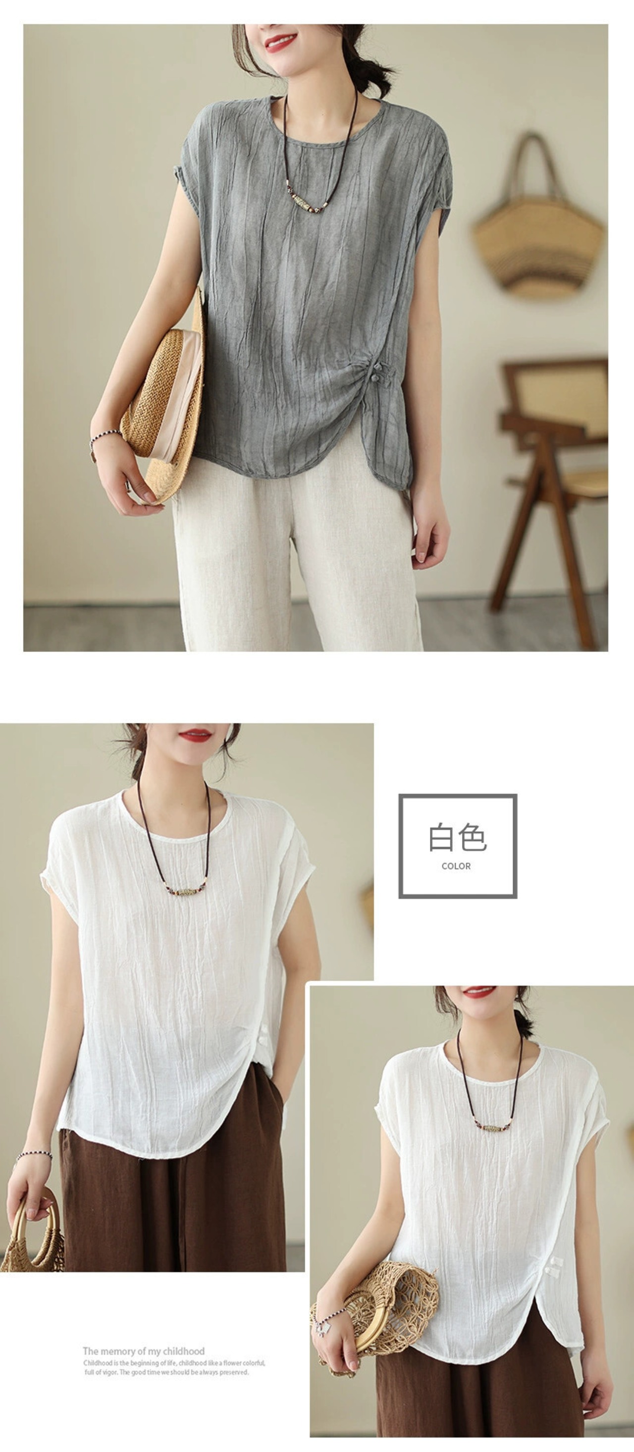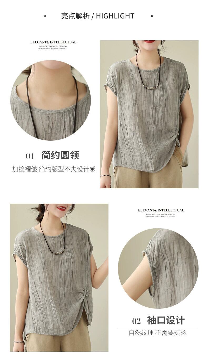 Eign Trade Export Big Tail Goods 撤退レディースレトロリネンシャツトップルーズで軽いコットンとリネンの半袖Tシャツ sine83312332475