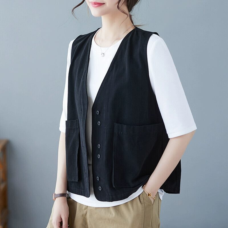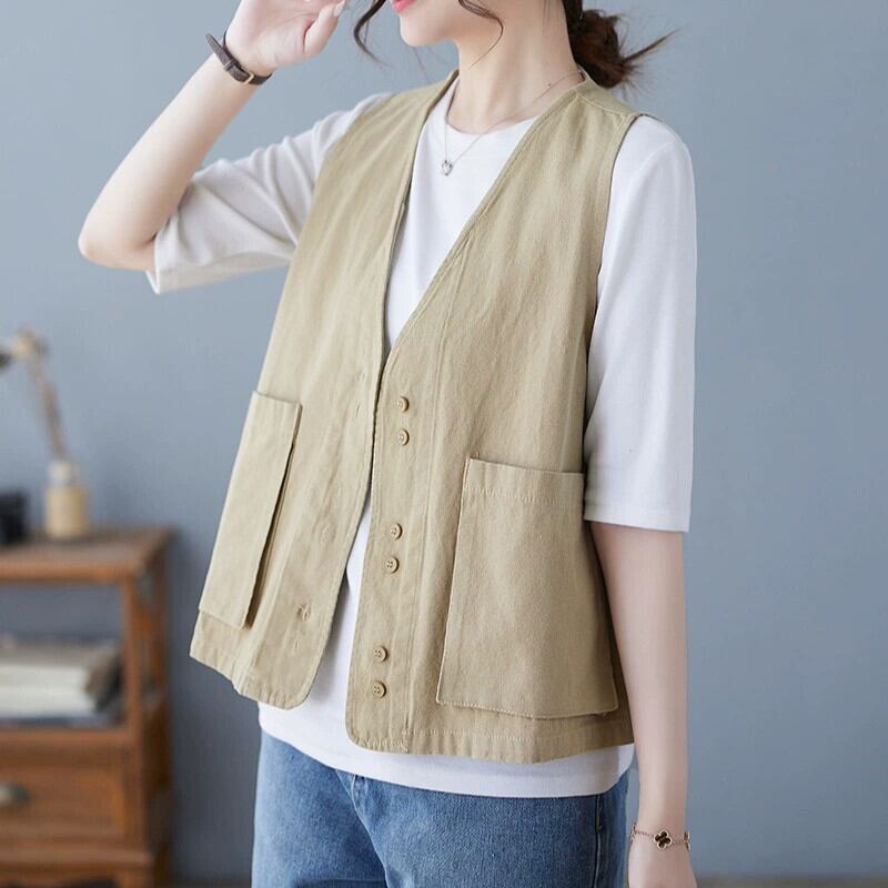 ディスカウント ストア ショッピング モール レトロな作業服チョッキ ベスト女性のルーズ V ネック ノースリーブ トップ Vネック sine80139567977
