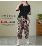クリアランスリーク〜カウンター最終在庫レトロコットンとリネン半袖トップス夏カジュアルプリント9点パンツ2点セットレディース サマー 夏物 sine76894445112