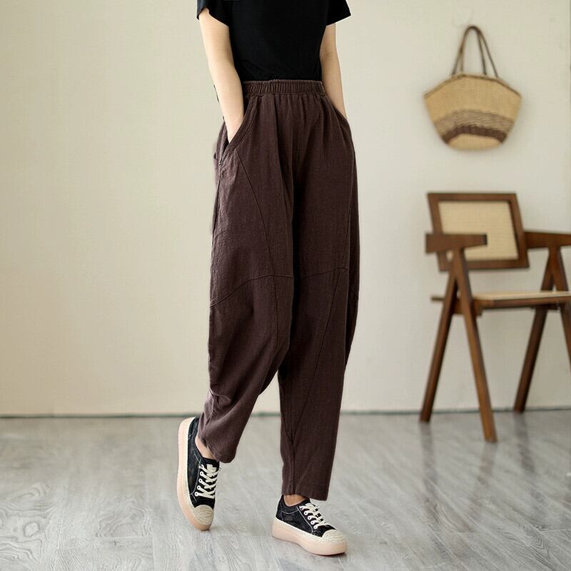 クリアランスリーク〜eseオリジナルのレトロなコットンとリネンのハーレムパンツの女性、ルーズハイウエストカジュアル9ポイントリネンキャロットパンツ sine17316209643
