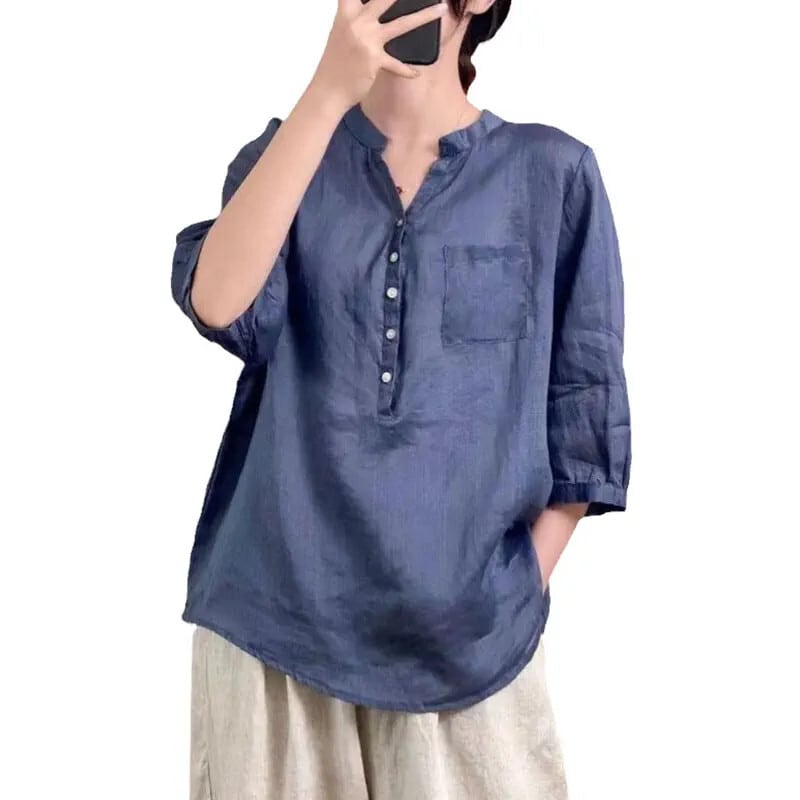 Eign Trade 割引ブランドテールグッズレディースレトロラミー V ネックシャツトップゆったりとした軽いコットンとリネンの半袖シャツ夏 サマー 夏物 Vネック sine41461114663