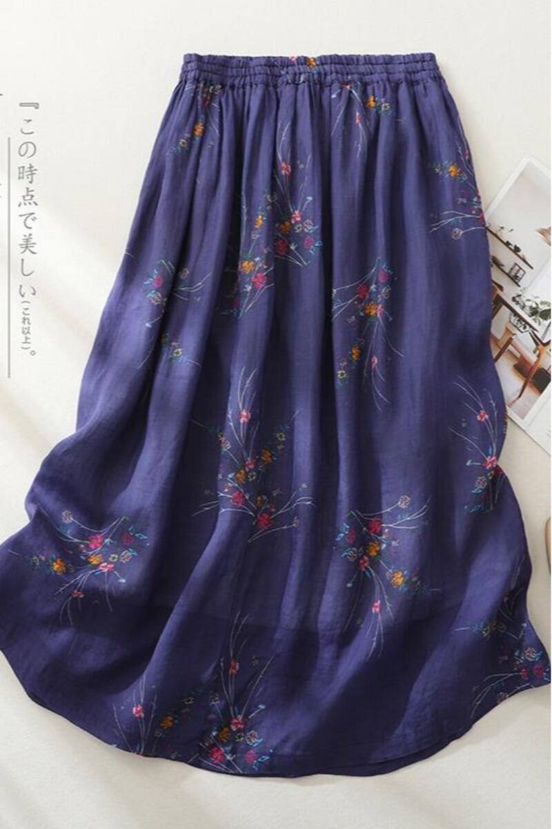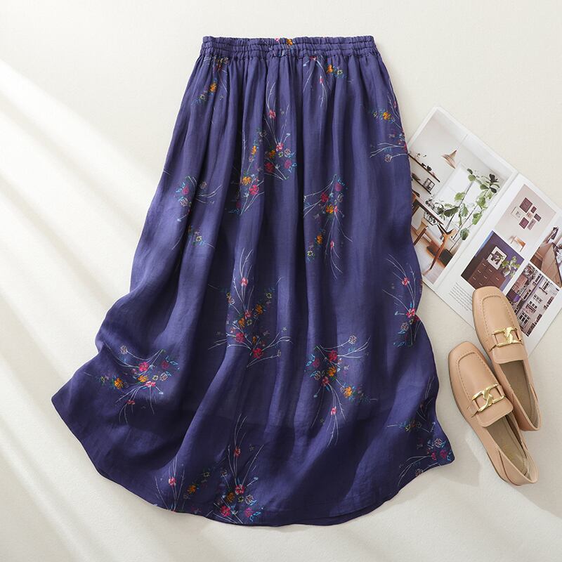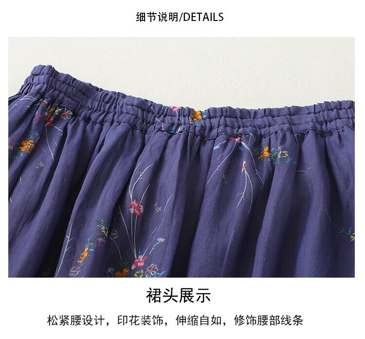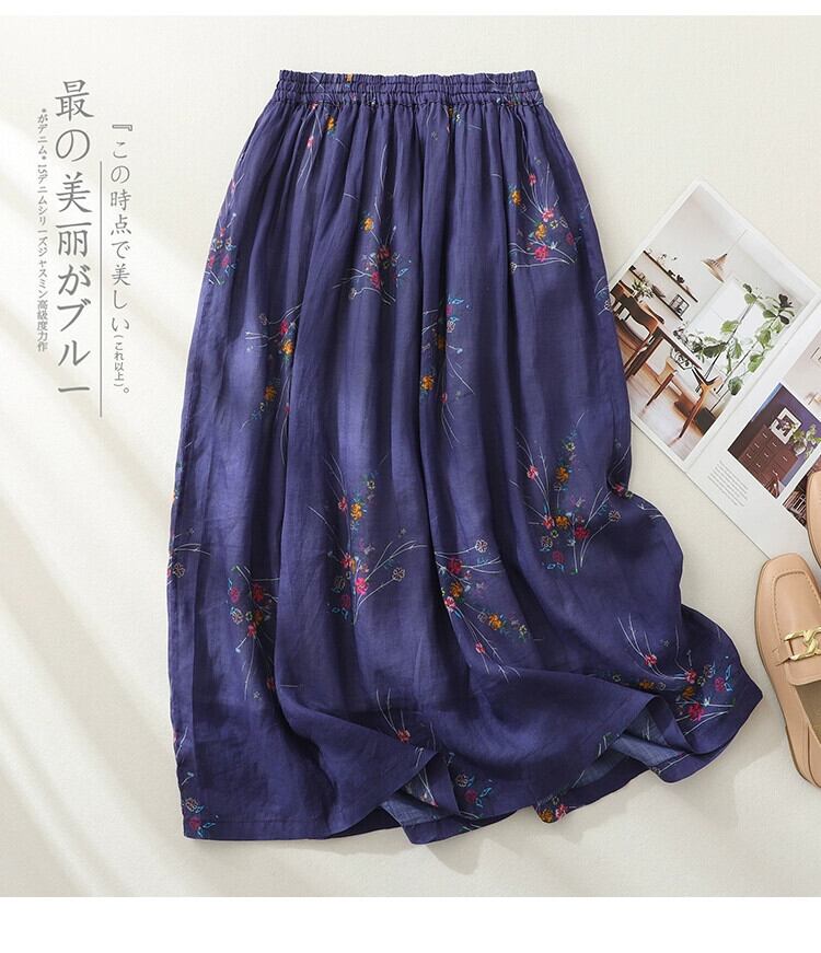 eign trade ese オリジナルハイエンドブランド婦人服レトロプリントコットンリネンスカートハイウエストラミー A ラインスカート Aライン sine86212033919