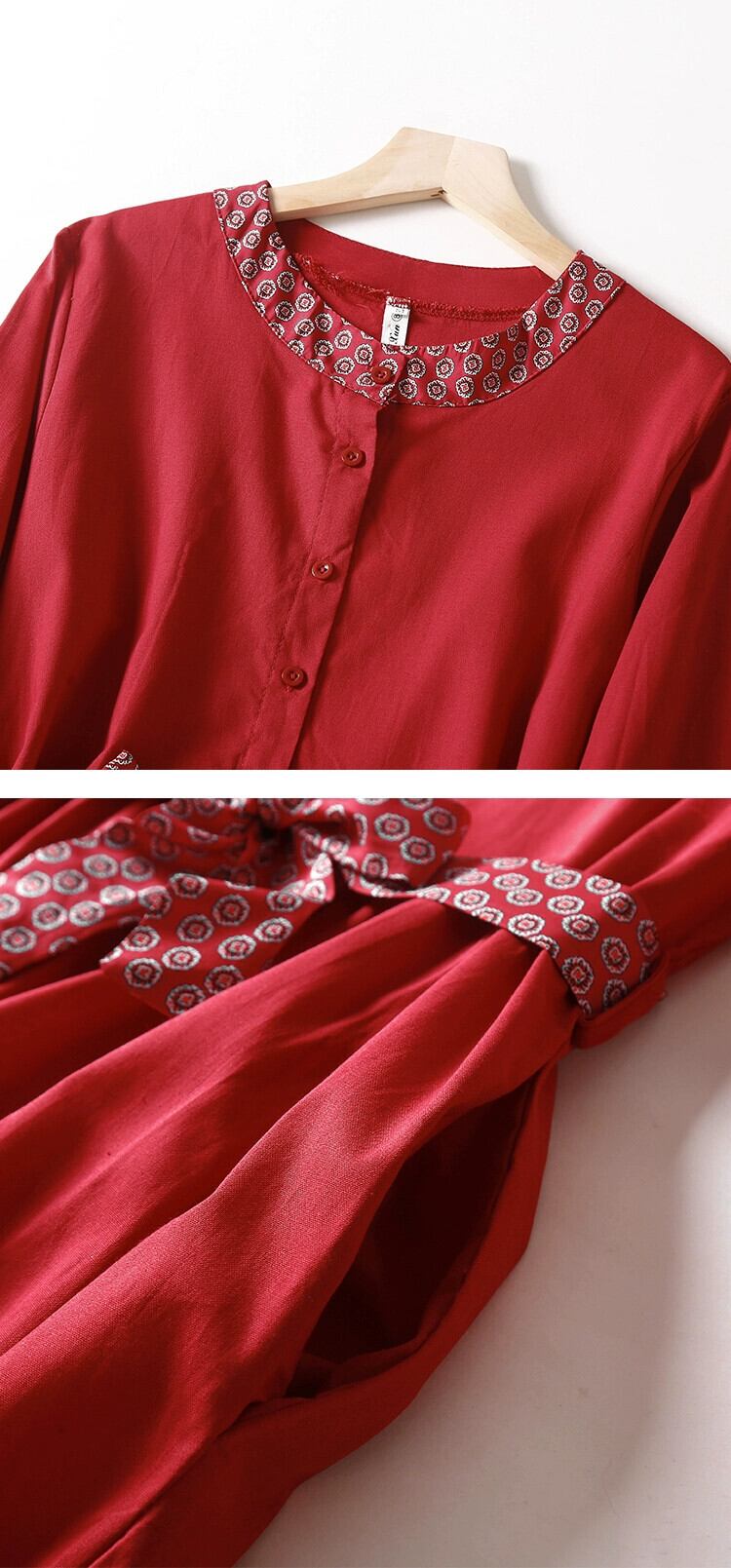 eign trade イタリア撤退最後の在庫の女性のエスニック スタイルのウエストを絞ったラミー ローブ ルーズ プリント長袖コットンとリネンのドレス ロング sine72895911541