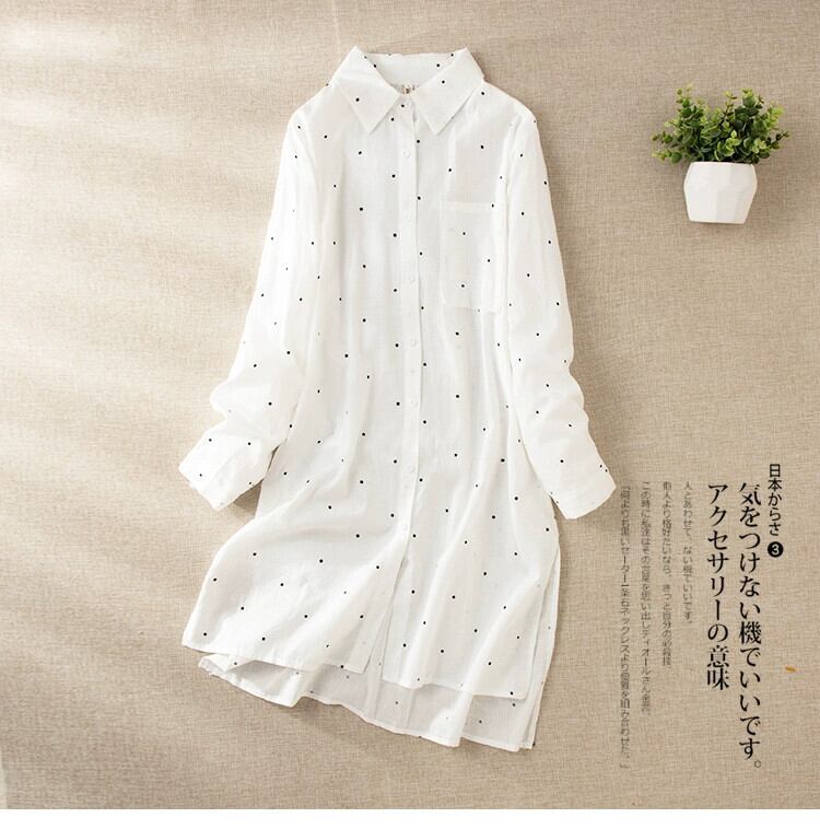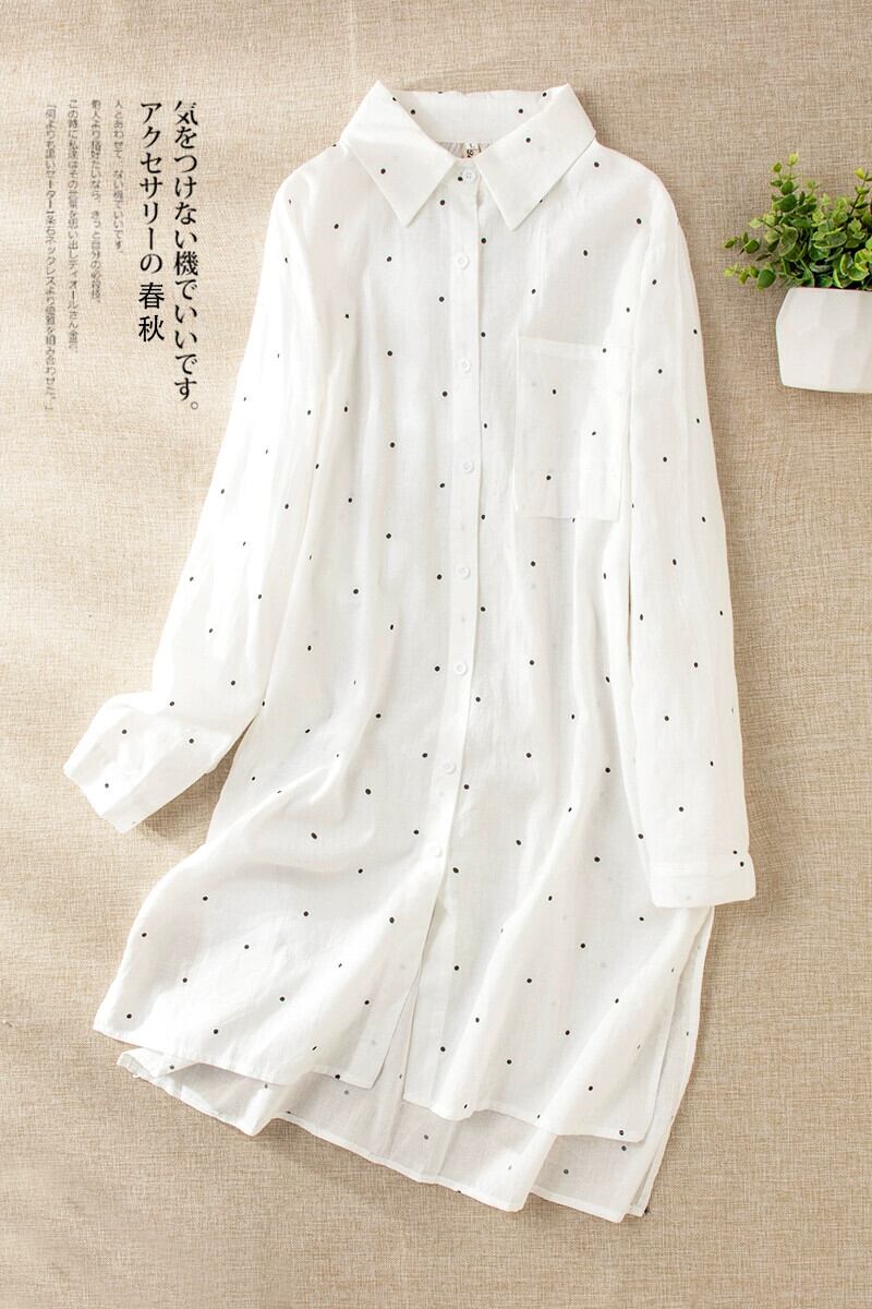 ese and オリジナル eign trade グッズ レディース 大きいサイズ 水玉ラミー シャツ ミモレ丈 スカート ルーズ ラペル コットン リネン ドレス 大きめサイズ sine55244410522