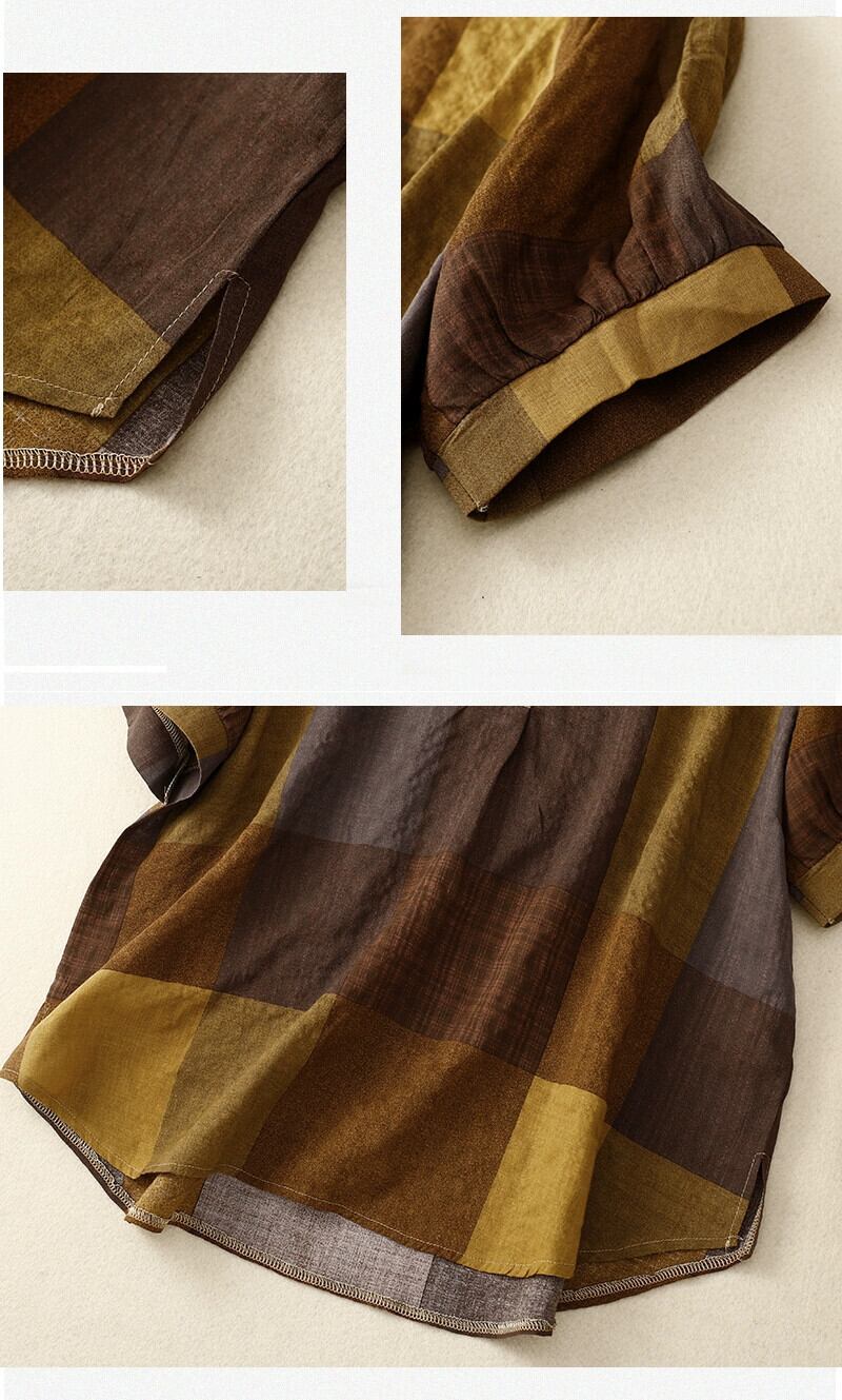 eign trade ese オリジナルハイエンドブランドの女性のコントラストカラー多用途コットンとリネン半袖トップスルーズ薄手リネンシャツ夏 サマー 夏物 sine38983261339