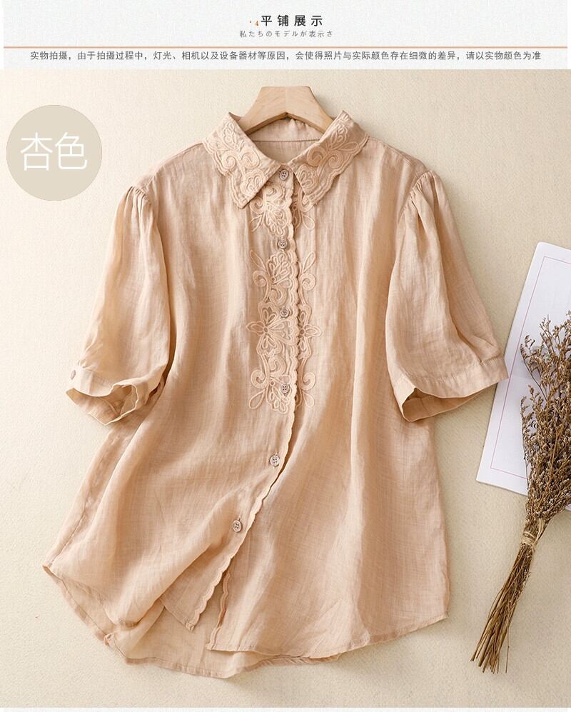 eign trade counter ブランドテールグッズ ese 綿とリネン半袖シャツトップス女性ルーズカジュアルリネンポロカラーシャツ コットン sine19658962384
