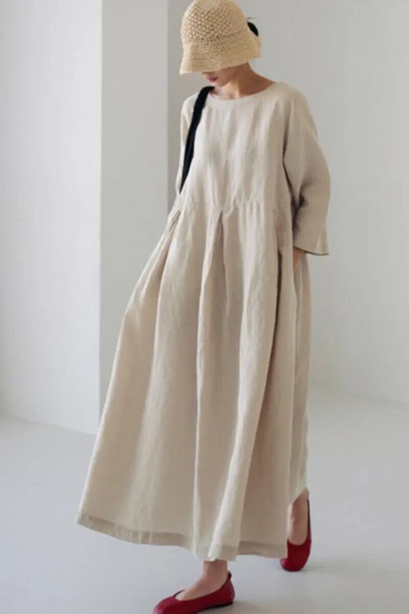 最高級ブランド eign trade 最終在庫文学芸術綿麻長袖ドレスレディースゆったり大きいサイズリネン A ラインロングスカート コットン 大きめサイズ Aライン sine35825156648