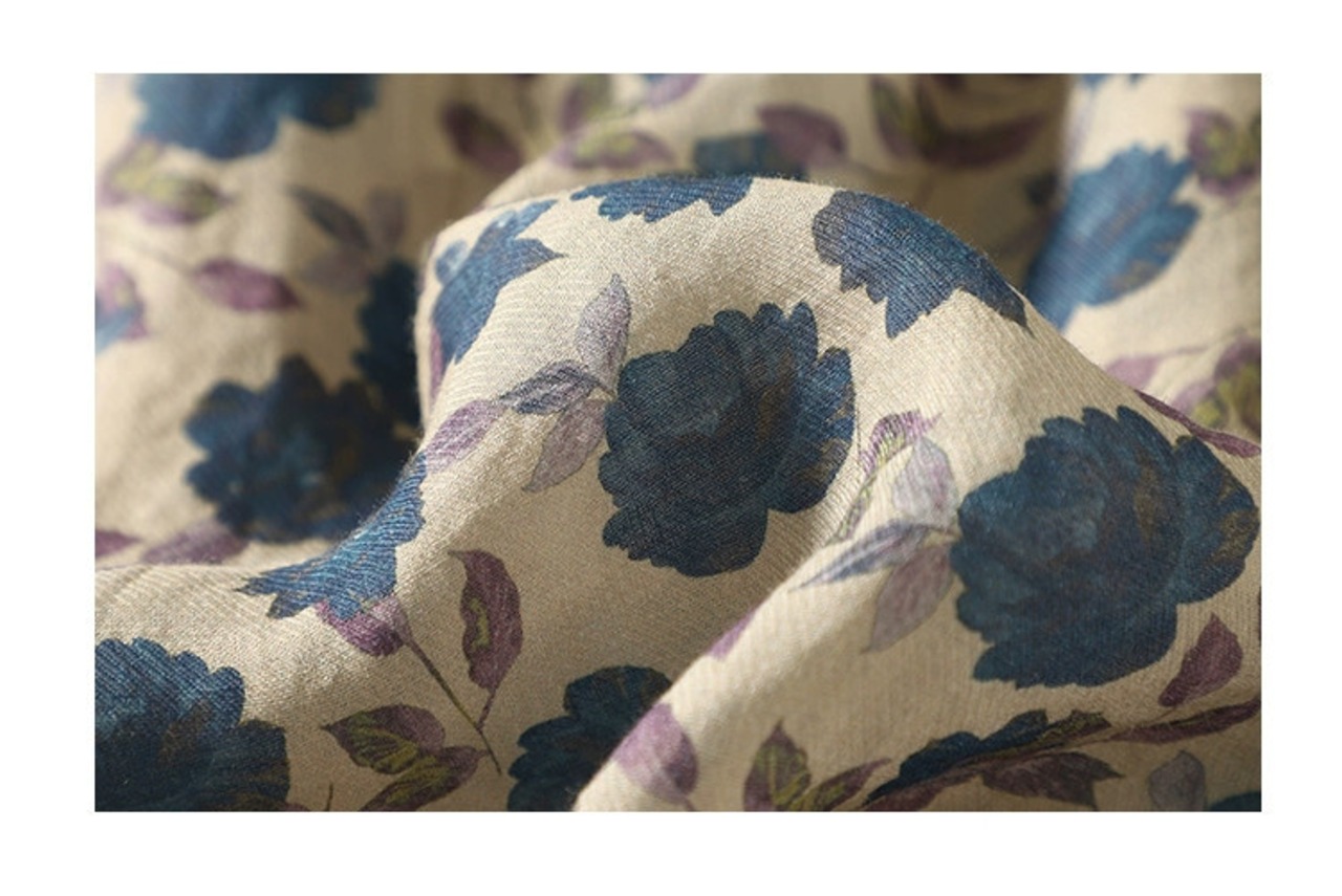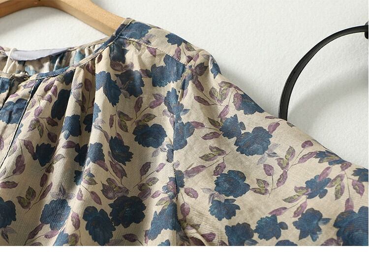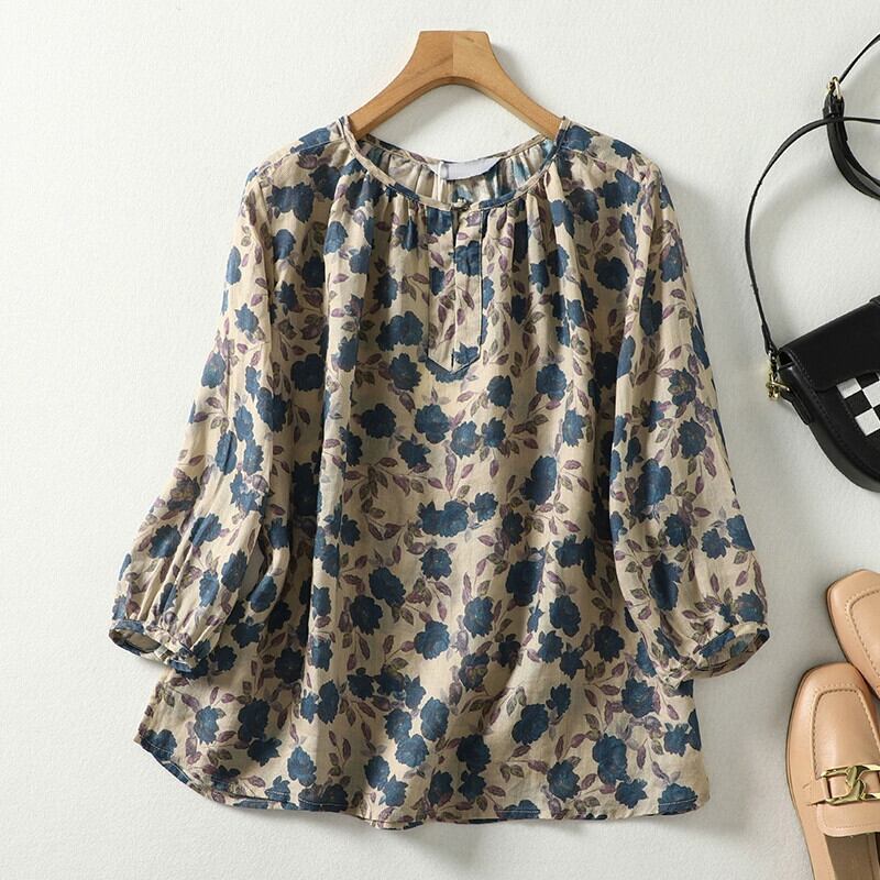 eign trade 割引ブランドテールグッズレトロプリントコットンとリネンベビードールトップス女性のルーズでスリムなリネンプルオーバーシャツ sine97348527828