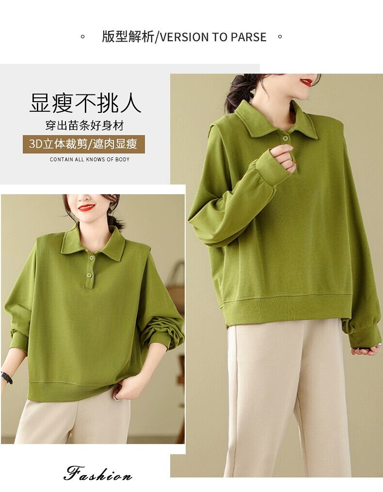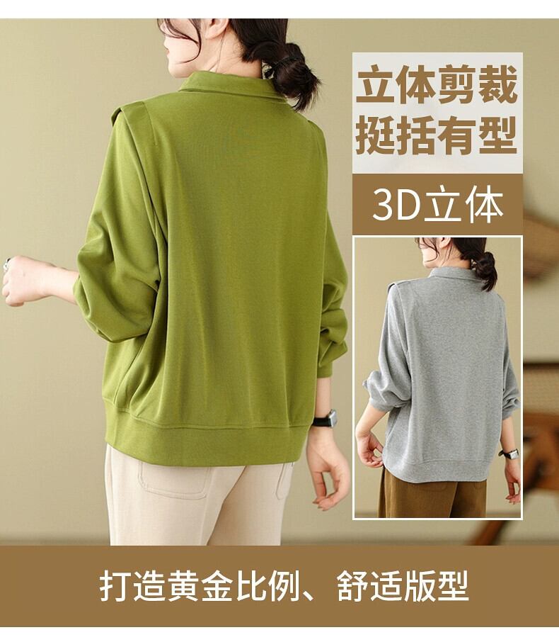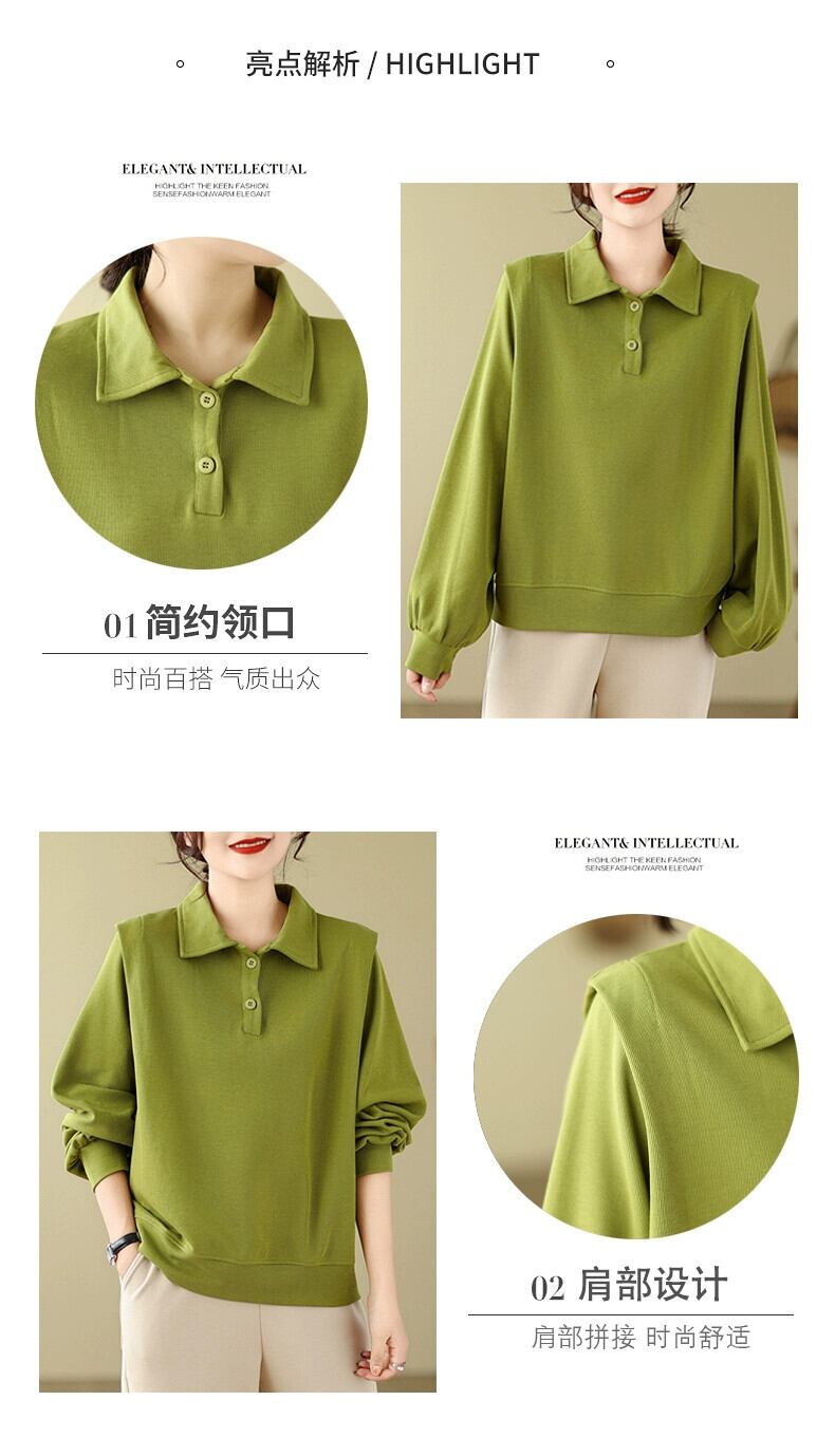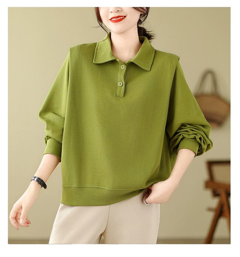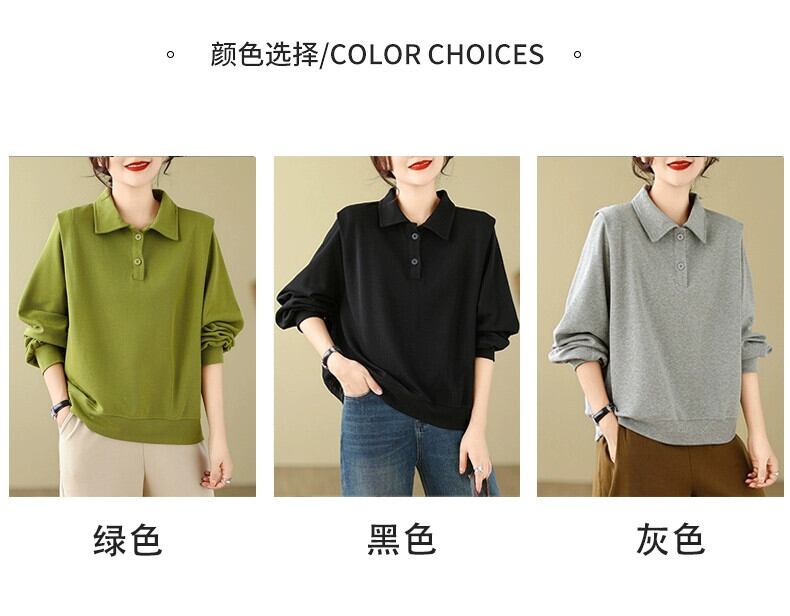 ese オリジナルシングル eign 貿易ビッグネーム無地多用途ポロカラースウェットシャツ女性の秋と冬のルーズカジュアルプルオーバー長袖トップ ロング オータム 秋物 ウィンター 冬物 ソリッドカラー sine90297316656